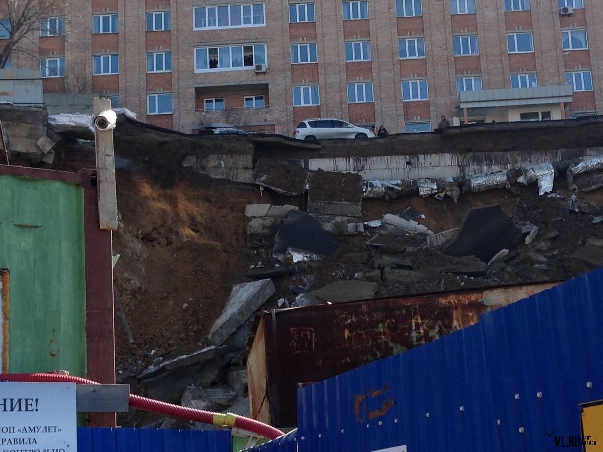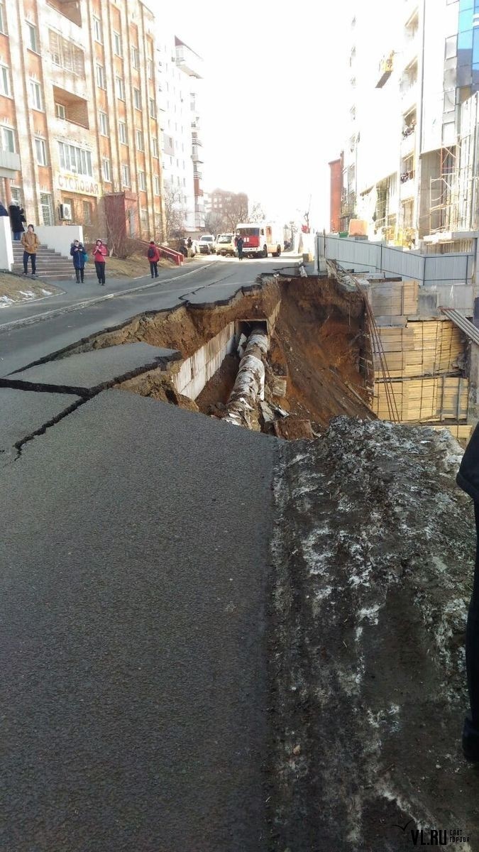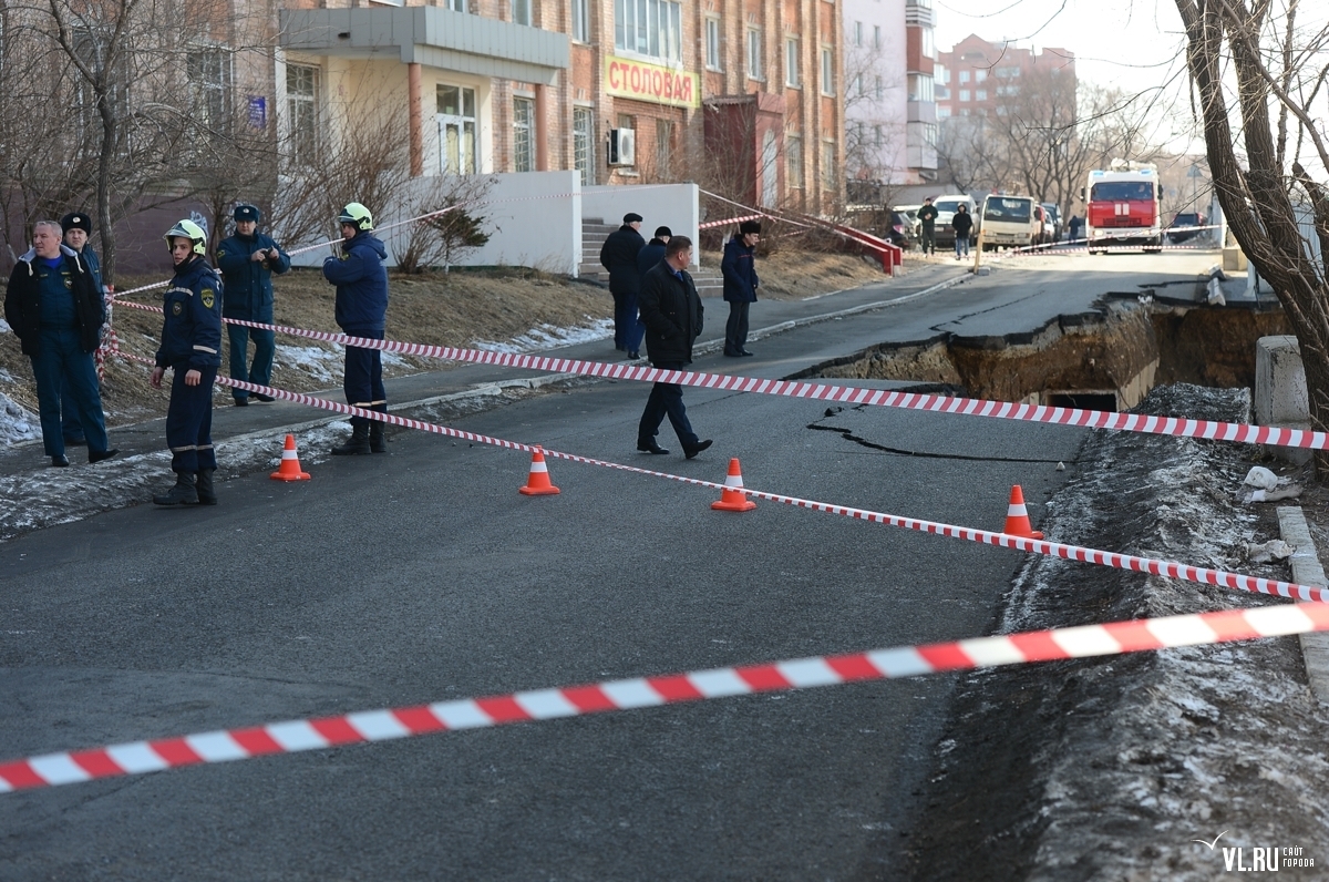 По данным специалистов администрации Владивостока, прибывших на место происшествия, обрушение грунта произошло из-за строительных работ. Как сообщили в пресс-службе мэрии, рабочие на площадке, где возводится новый жилой комплекс, раскапывали грунт экскаватором, в результате участок дороги начал проваливаться.