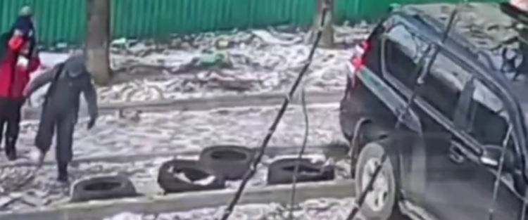 Запись была сделана камерой наблюдения около дома № 125 на проспекте Красного Знамени во Владивостоке. Школьники играли на тротуаре, один из них пнул пустую банку, которая отлетела и попала во внедорожник. Из машины тут же выскочил мужчина, испуганные дети стали убегать и столкнулись друг с другом, после чего упали на землю.