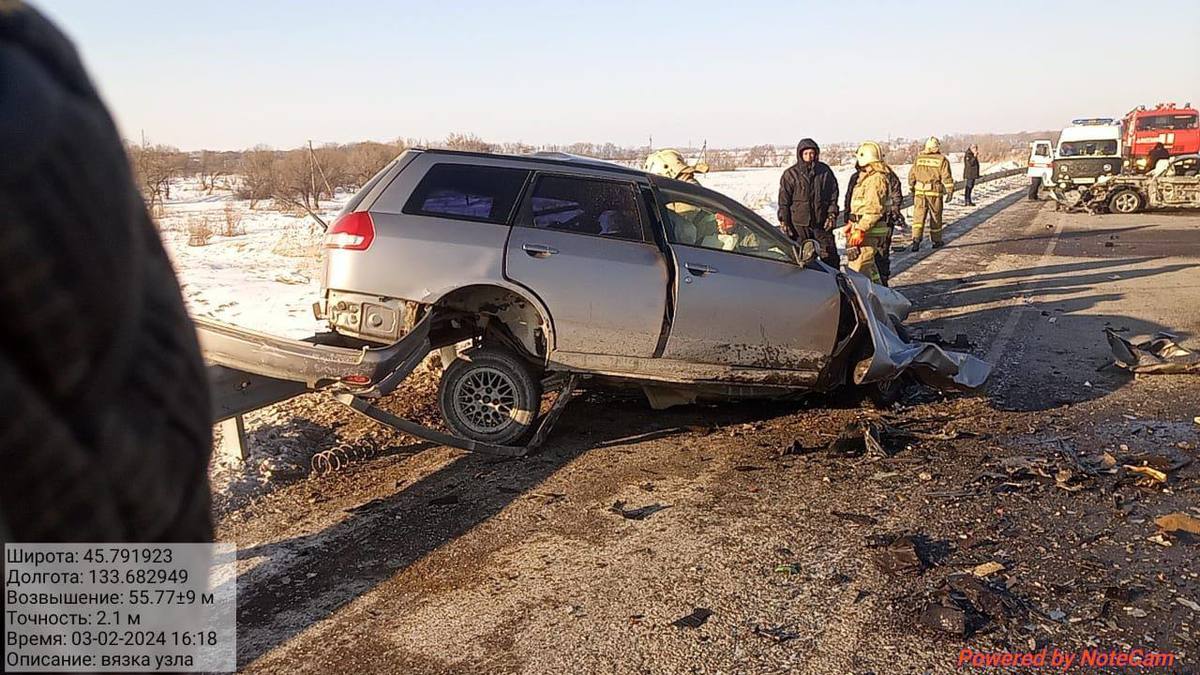 В районе посёлка Филино в Дальнереченском городском округе произошло ДТП, в котором погибли четыре человека. Это водитель Toyota Mark II, оказавшегося на встречной полосе, а также водитель и две пассажирки Nissan Wingroad, в который врезался Mark. Людей, зажатых в салонах искорёженных автомобилей, доставали спасатели.