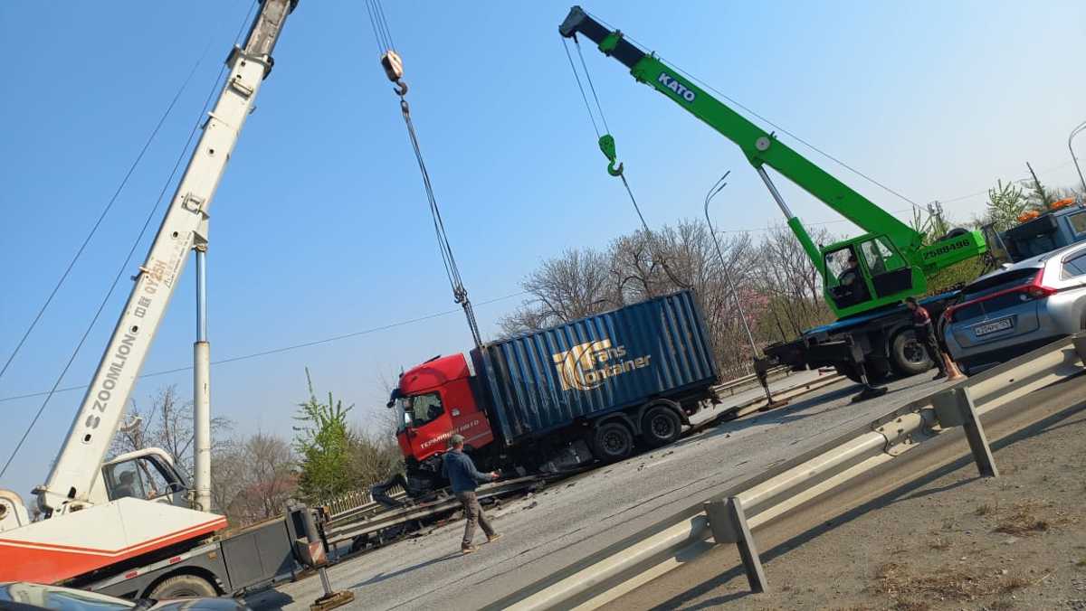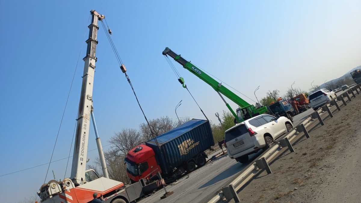 Утром на место ДТП приехали два эвакуатора и подняли тягач с контейнером. В администрации Владивостока сообщили, что к 10:00 трасса была свободна.