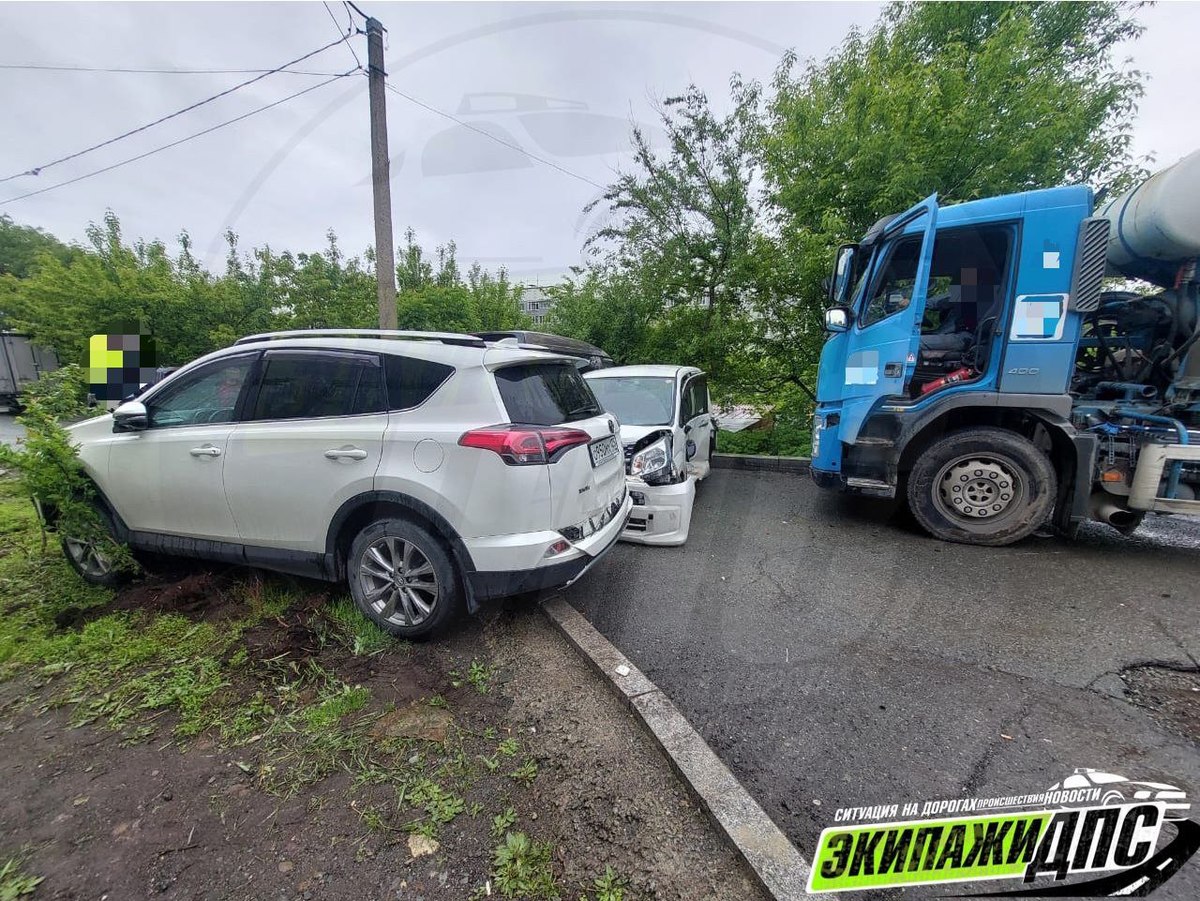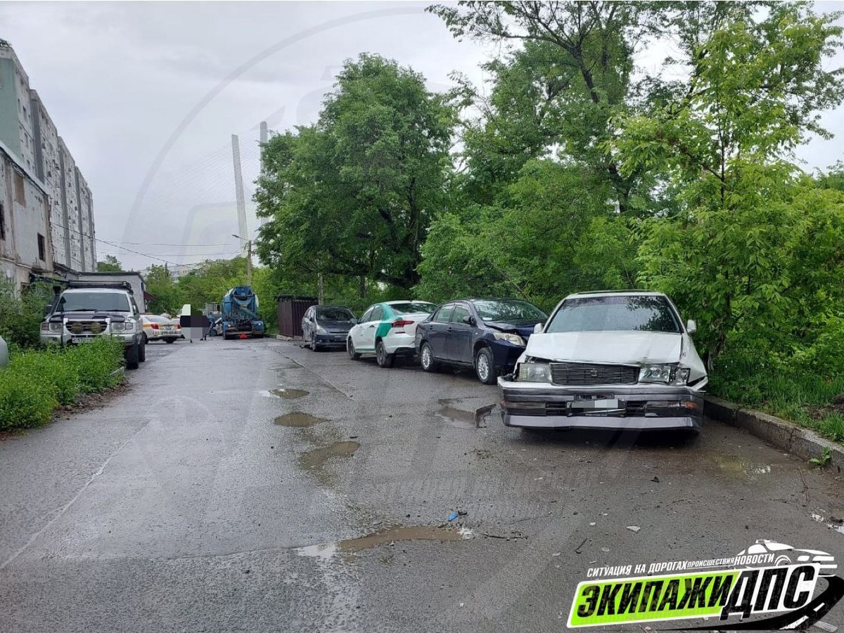 Наши читатели, которые прислали видео, говорят, что обычно здесь гуляют дети, повезло, что сегодня плохая погода. Бетономешалка была без водителя и в какой-то момент покатилась. Ехала медленно, но припаркованные автомобили оказались смяты.
