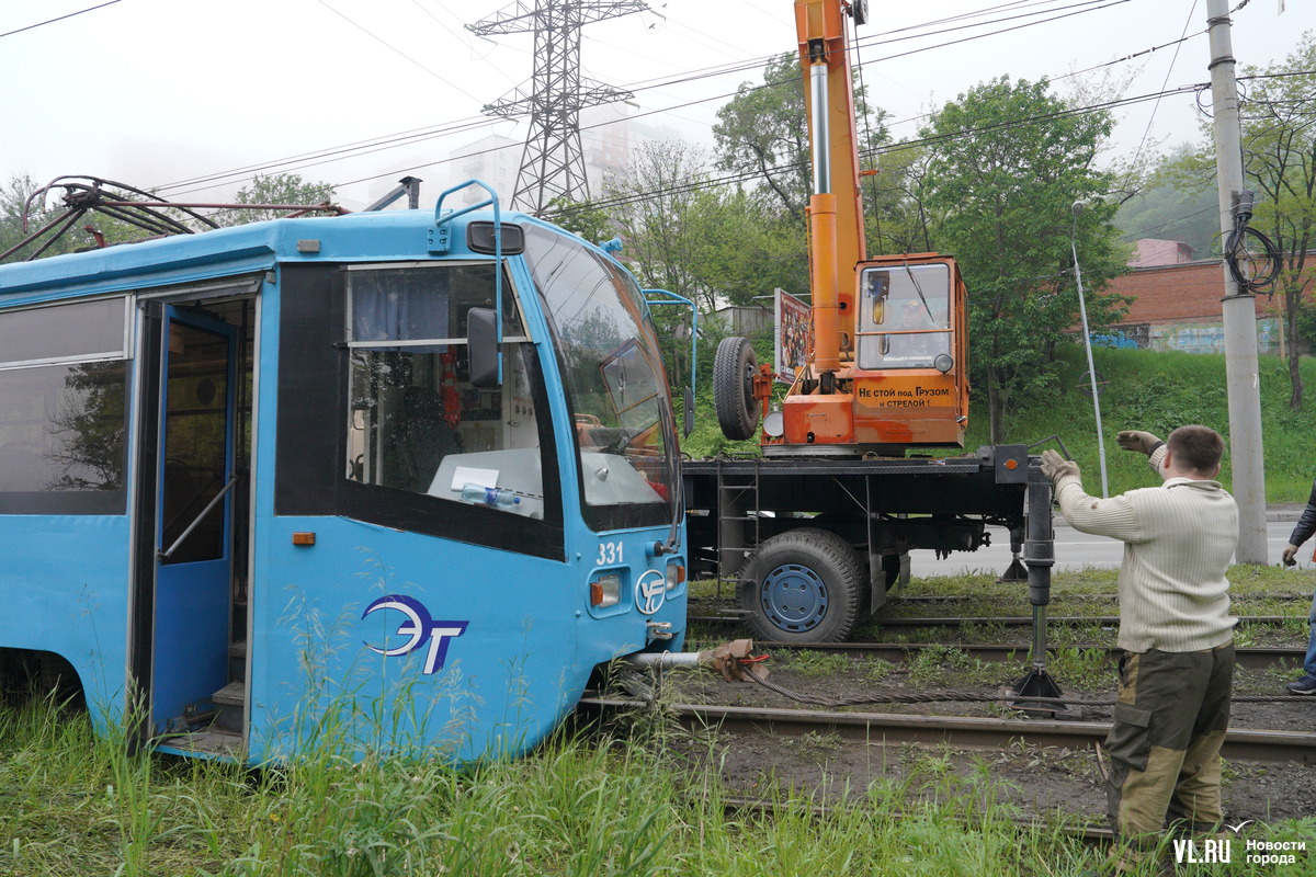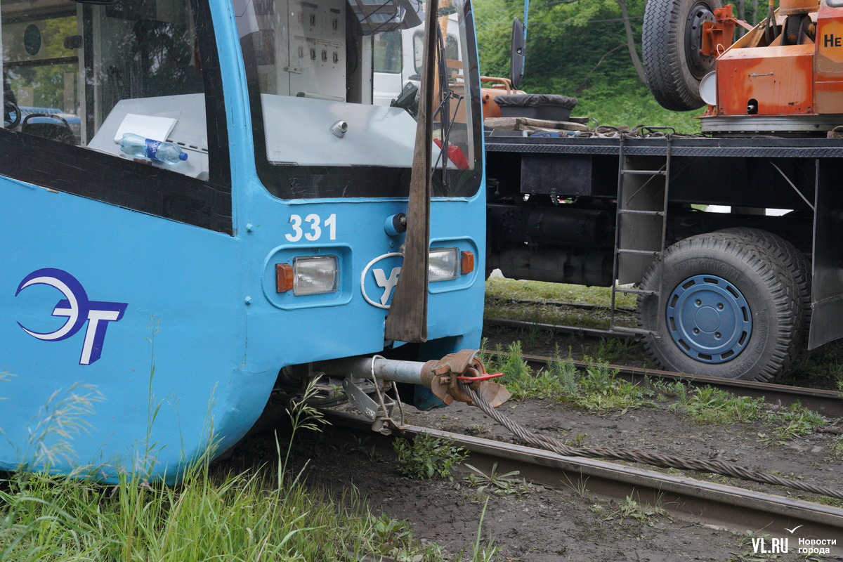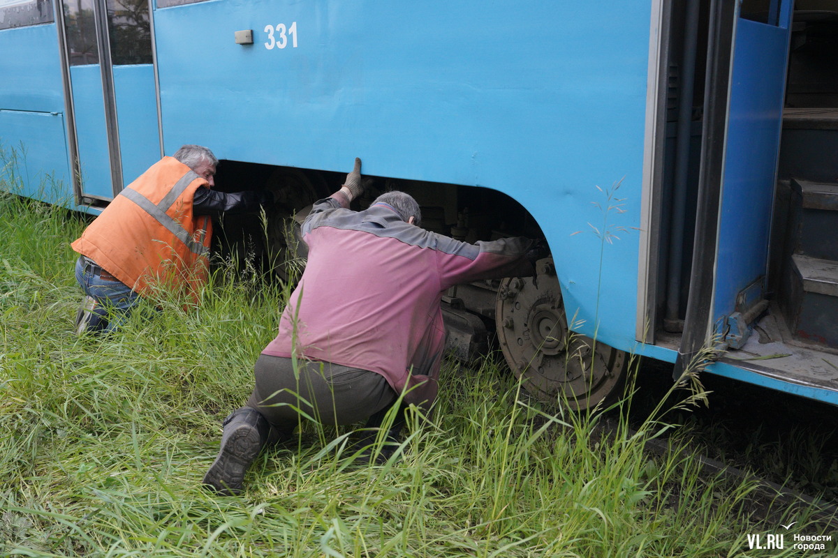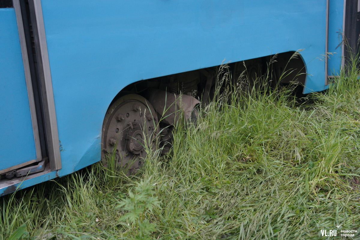 Вечером в субботу, 8 июня, на Минном городке трамвай соскочил с рельсов. Каким-то образом он ушёл по ходу движения вправо. Передняя колёсная пара оказалась на траве рядом с путями. Фотокорреспондент Новостей VL.ru сообщает, что уже приехали аварийная бригада и автокран. Вагон будут пытаться подцепить и поставить на место.