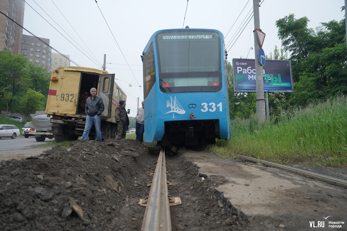 В администрации Владивостока сообщили, что все трамваи из-за этого остановились. Ремонтом уже занимаются, сегодня планируется полностью восстановить рельсы и запустить движение.