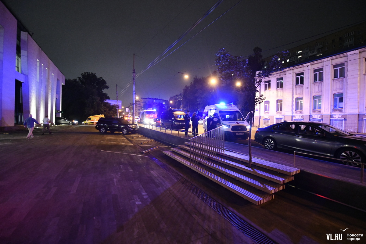 23:40: Всё службы разъехались, остались только полицейские, которые охраняют вход.