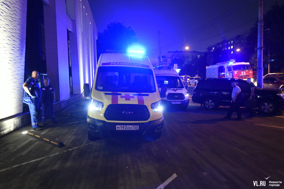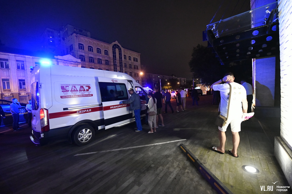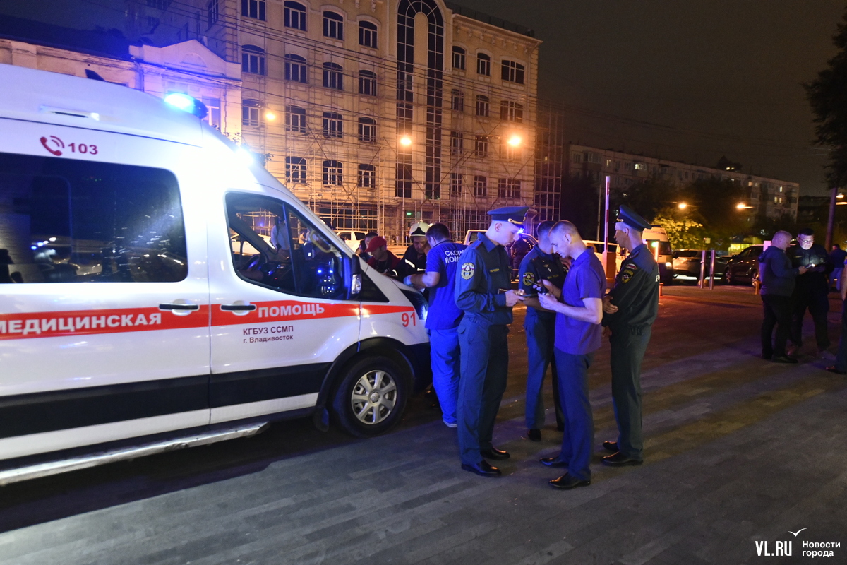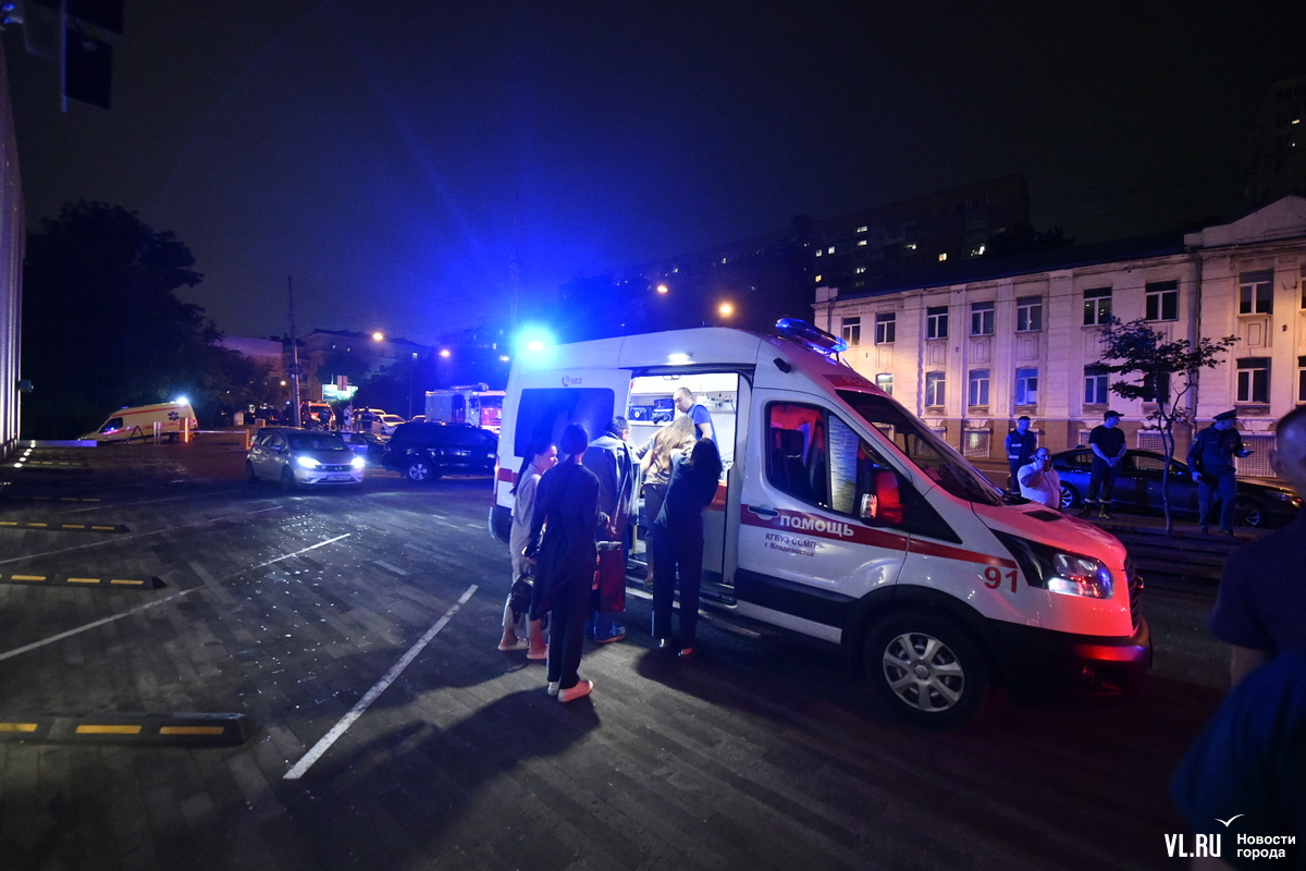 2 августа 08:47: По данным министерства здравоохранения Приморского края, в «Акватории» пострадали 9 человек, среди них детей нет. Один человек госпитализирован во Владивостокскую клиническую больницу № 2, его состояние врачи оценивают как средней степени тяжести, угрозы жизни нет. Восемь человек осмотрены врачами медучреждения и отправлены на амбулаторное лечение.