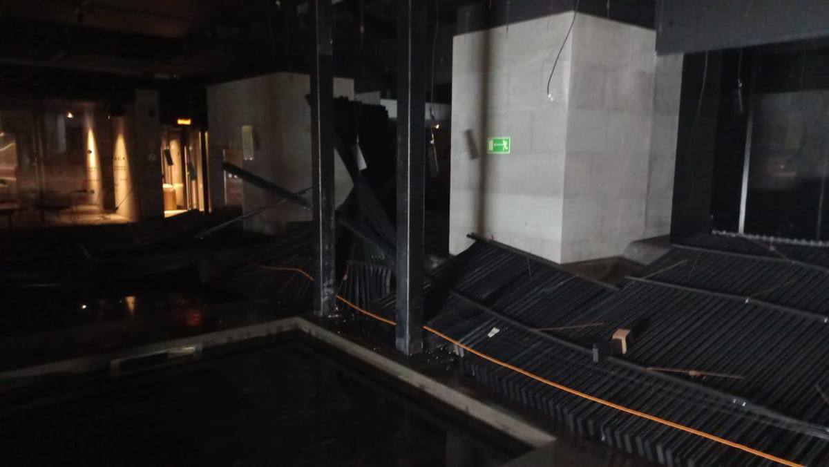 В водном комплексе «Акватория» сообщили, что частичное обрушение элементов алюминиевого реечного подвесного потолка на -2-м этаже произошло в 21:15, а эти элементы являются декоративными и не имеют отношения к конструктиву здания.