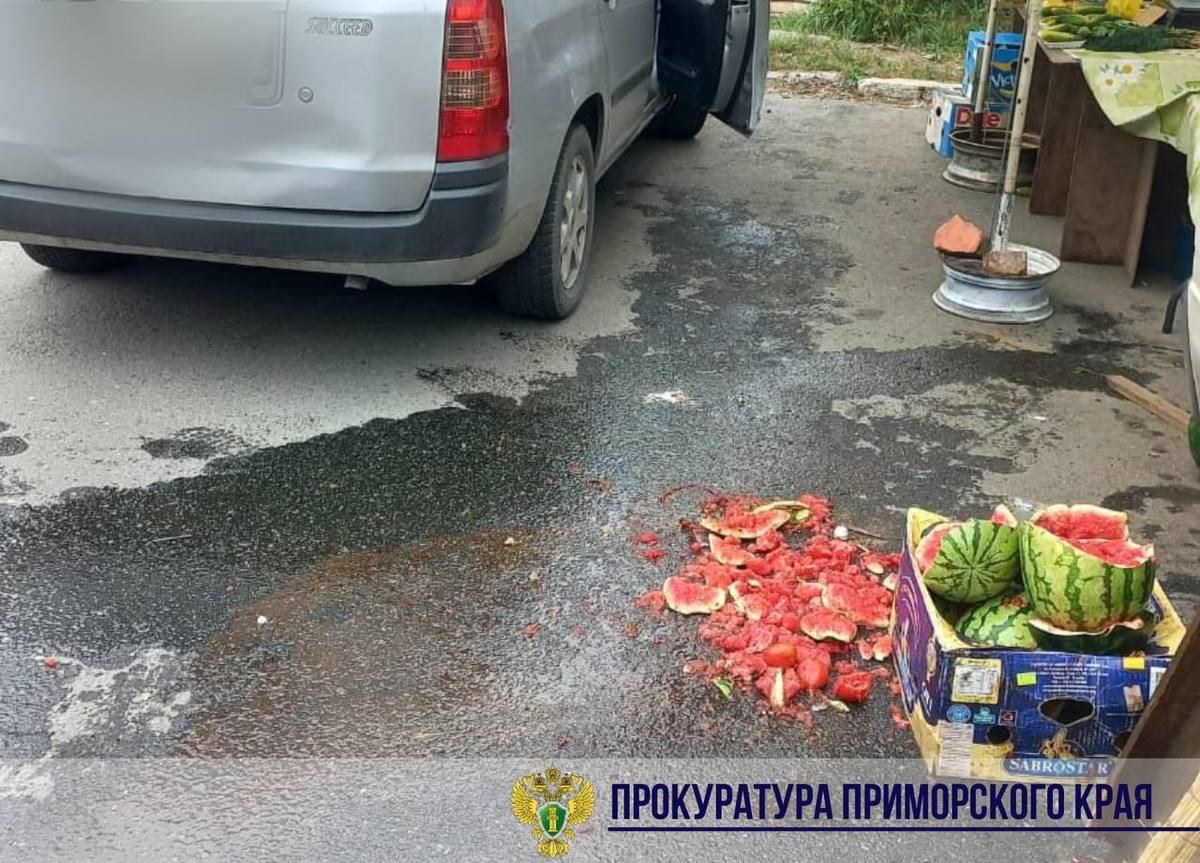 В Находке мужчина на универсале сдавал назад и наехал на прилавок с овощами и фруктами, где в этот момент находились люди. Пострадали ребёнок, его мать и пенсионерка. Автомобиль также раздавил коробку с арбузами.