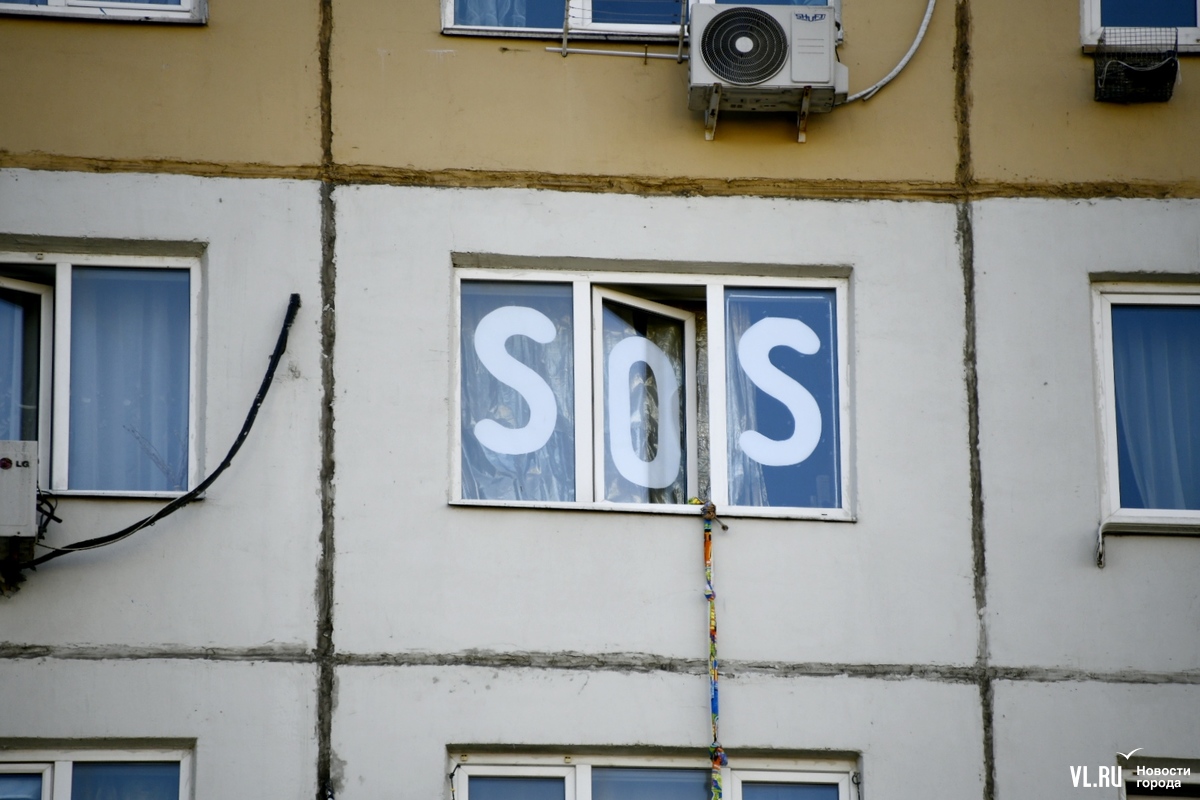 Вечером в понедельник, 16 сентября, в доме на Луговой, 50а во Владивостоке девушка разместила на окне просьбу о помощи в виде надписи SOS и использовала мигание фонарика. На сигнал выехали полиция и спецслужбы. В ответ на попытки связаться с ней через запертую дверь девушка попыталась покинуть квартиру через окно и сорвалась с карниза. Местные жители сообщают, что у пострадавшей мания преследования.