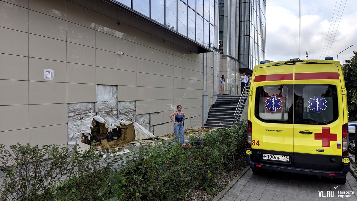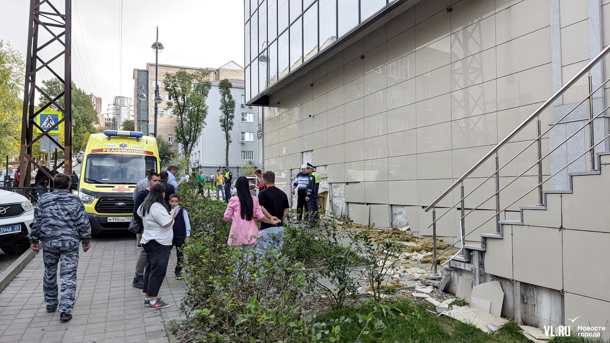Автомобиль протаранил стену здания на Прапорщика Комарова, где располагается Россельхозбанк. Удар был такой силы, что со стены отлетели фасадные плиты и утеплитель. По пути автомобиль сбил девушку-пешехода, проехал ещё почти 100 метров и остановился напротив роддома краевой больницы.