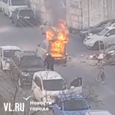 Обновление 13:20: МЧС Приморья сообщило, что инцидент произошёл на улице Русской в 09:47. Один из автомобилей загорелся по ходу движения во дворе медицинского учреждения, после его остановки огонь перекинулся на стоящую рядом машину. Пожар ликвидировали на общей площади около 5 квадратных метров. Одно транспортное средство полностью уничтожено огнём, второе повреждено частично.