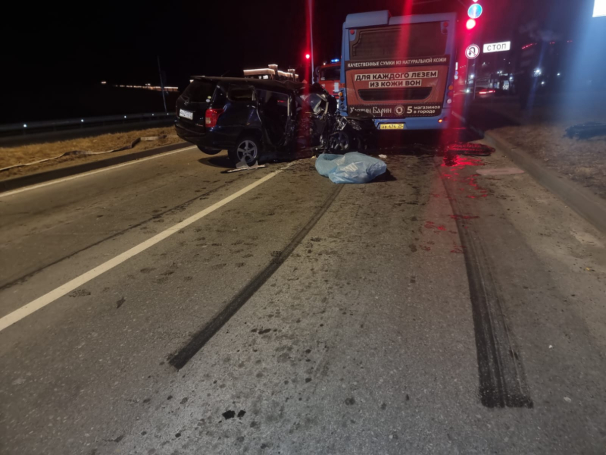 В результате аварии водитель универсала получил травмы, несовместимые с жизнью. Пассажиры автобуса не пострадали.