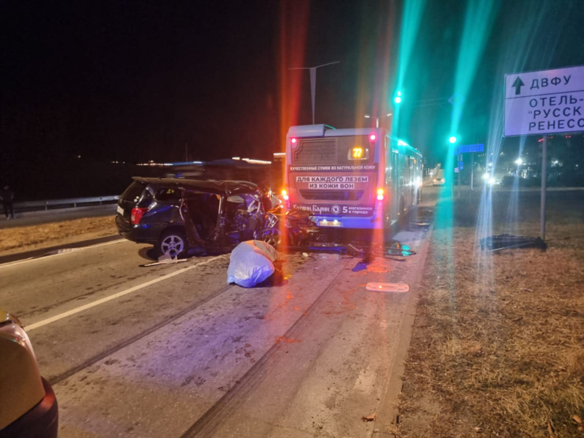 Смертельное ДТП с участием пассажирского автобуса произошло на Русском острове вечером 4 декабря в районе поворота на Канал. Автобус марки ЛиАЗ стоял перед перекрёстком и ждал зелёный сигнал светофора. В этот момент в него на полном ходу врезался Toyota Corolla Fielder, водитель легковушки погиб на месте.