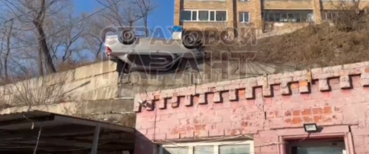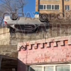 Во Владивостоке произошло курьёзное ДТП. К счастью, без пострадавших. В районе дома по Луговой, 45/2 автомобиль сорвался с косогора, перевернулся на крышу и повис на краю подпорной стены. Сообщается, что Toyota Corolla Axio была в аренде.