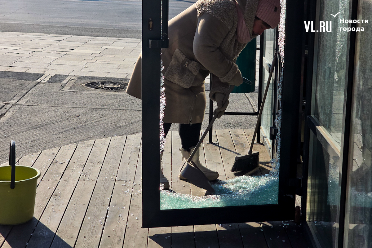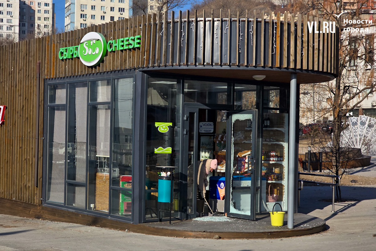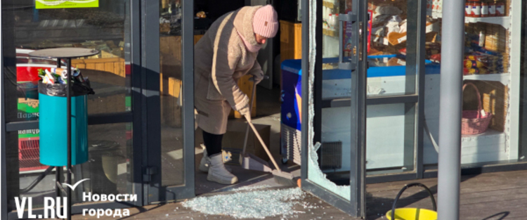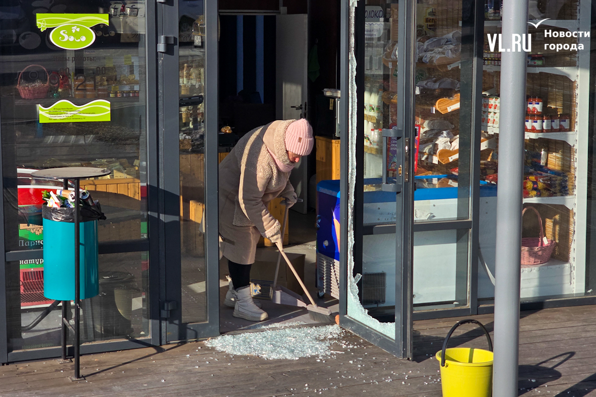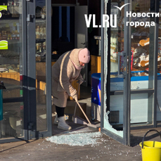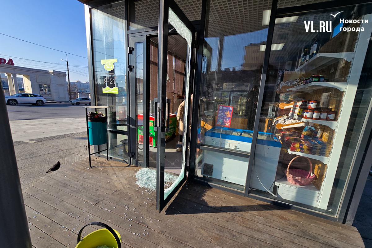Корреспонденты Новостей VL.ru побывали на месте происшествия. О взломе здесь напоминали осколки стекла у входа в магазин и дыра в двери. В самом магазине ситуацию комментировать отказались.