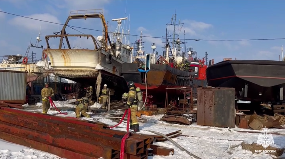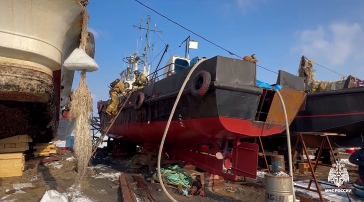 МЧС Приморья сообщило, что катер, находившийся на ремонте, загорелся во вторник, 4 февраля, в 10:01 в районе посёлка Поспелово.