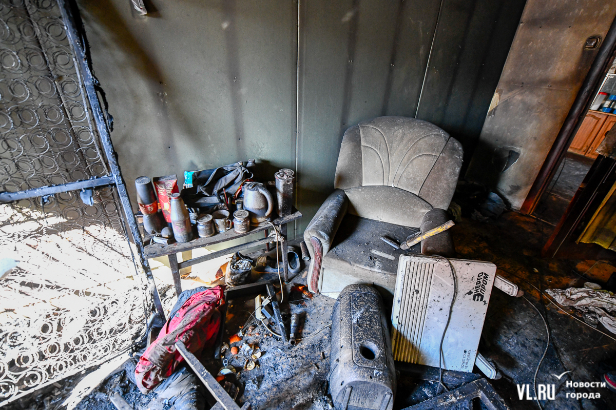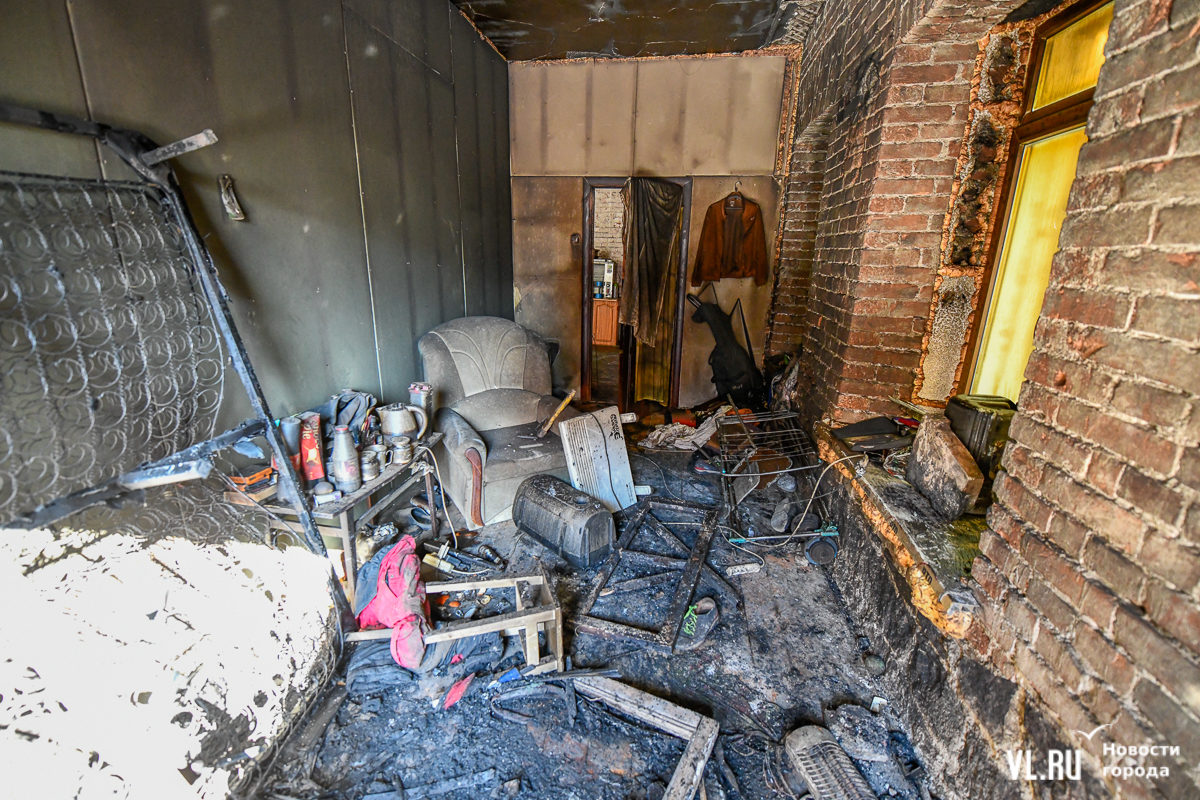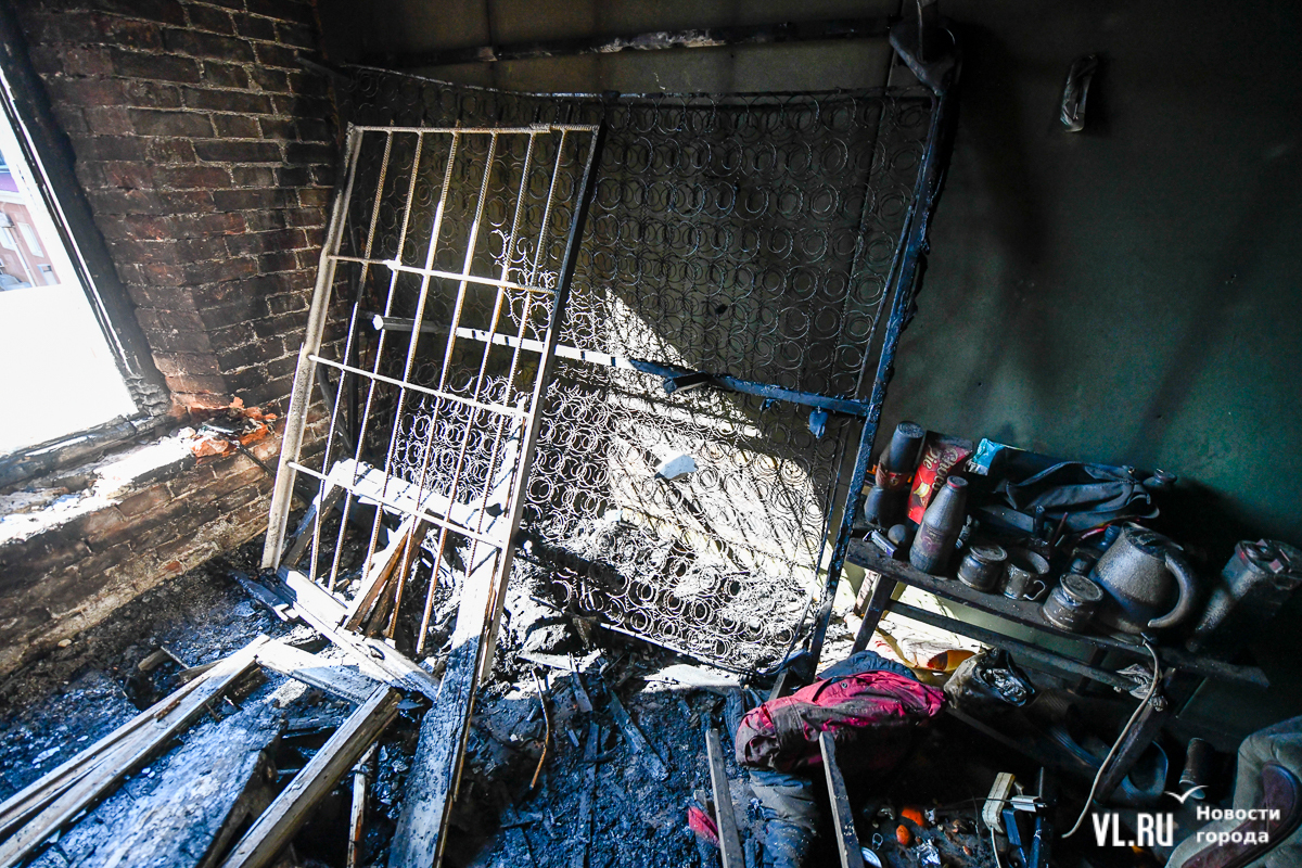 12:54: Фотограф Новостей VL.ru побывал на месте происшествия. Рабочий рассказал, что погибший мужчина жил в небольшой комнатке, всего около 10 «квадратов», на третьем этаже бывшей Пастеровской станции. Ему около 40 лет, говорят, был странным, вспыльчивым и выпивал. На каких основаниях он там поселился, никто не знает. У него была собака, она тоже погибла во время пожара – скорее всего, от угарного газа. В его комнате остались обгоревший диван, обогреватель и гитара.