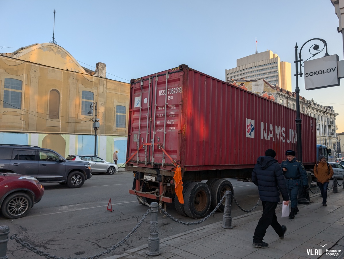 Видавший виды грузовик с контейнером на прицепе по неизвестным причинам сломался в правой полосе на Алеутской около Семёновской. На место оперативно приехали сотрудники ГИБДД и другая фура, которая, вероятно, должна была тащить «поломашку».