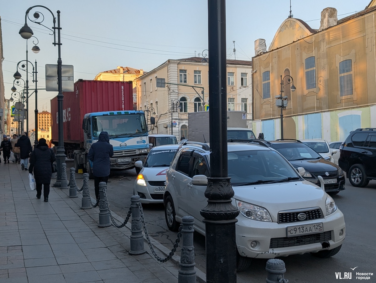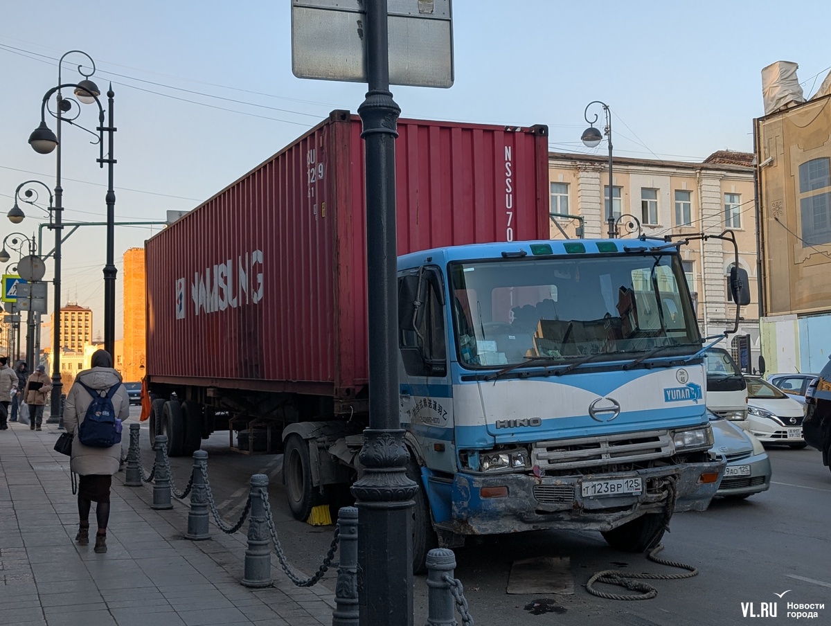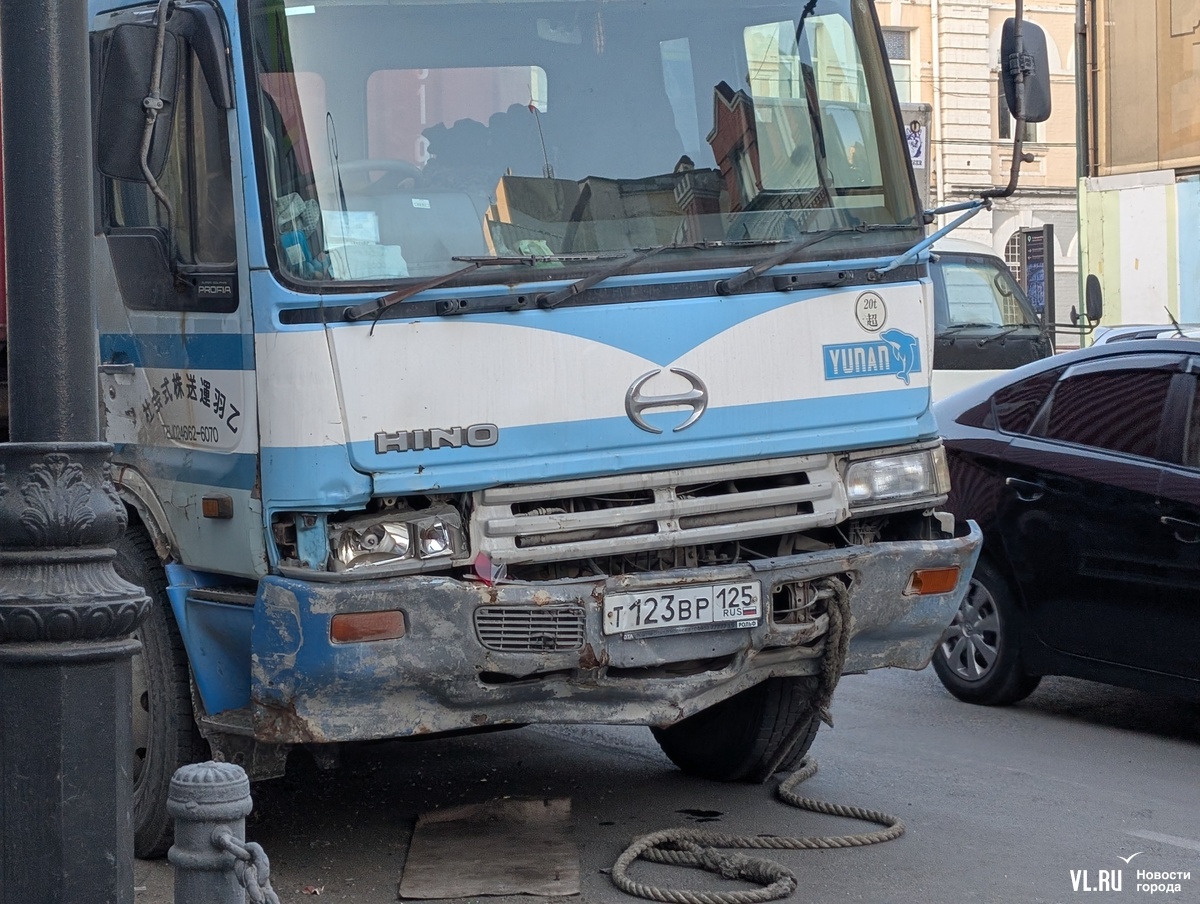 Но уже через пару часов сломавшийся Hino заметили около ТЦ «Алеутский» – он въехал в Toyota Land Cruiser. Тот отлетел в припаркованный универсал, а он, в свою очередь, зацепил впереди стоявшую Honda Fit. По словам водителя фуры, что-то произошло с тормозами.