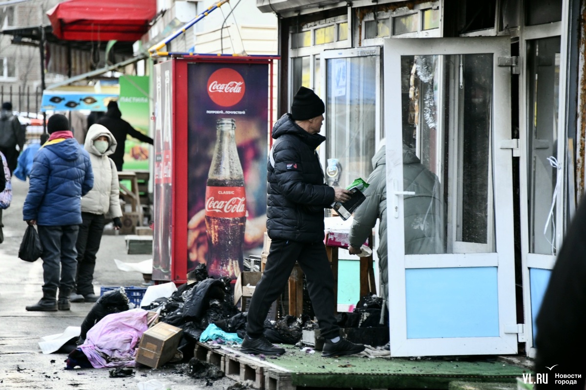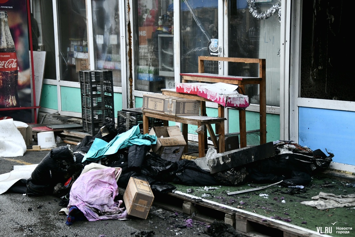 18:44: Корреспондент Новостей VL.ru насчитал четыре сгоревших павильона с одеждой и продуктами, ещё два павильона занимает кафе. В нём от жара полопались стёкла. На земле валяются огнетушители – продавцы поначалу пытались тушить огонь своими силами.