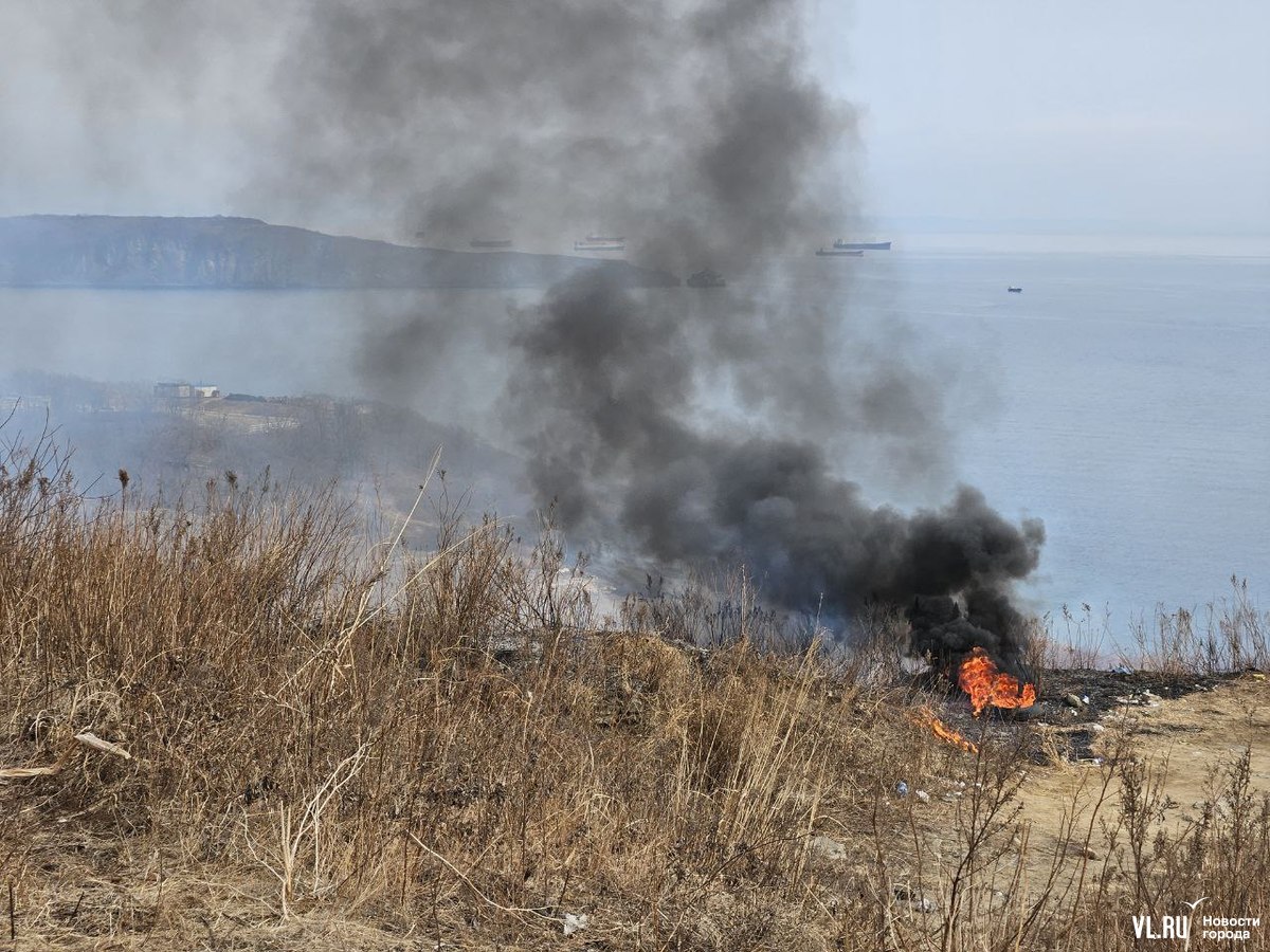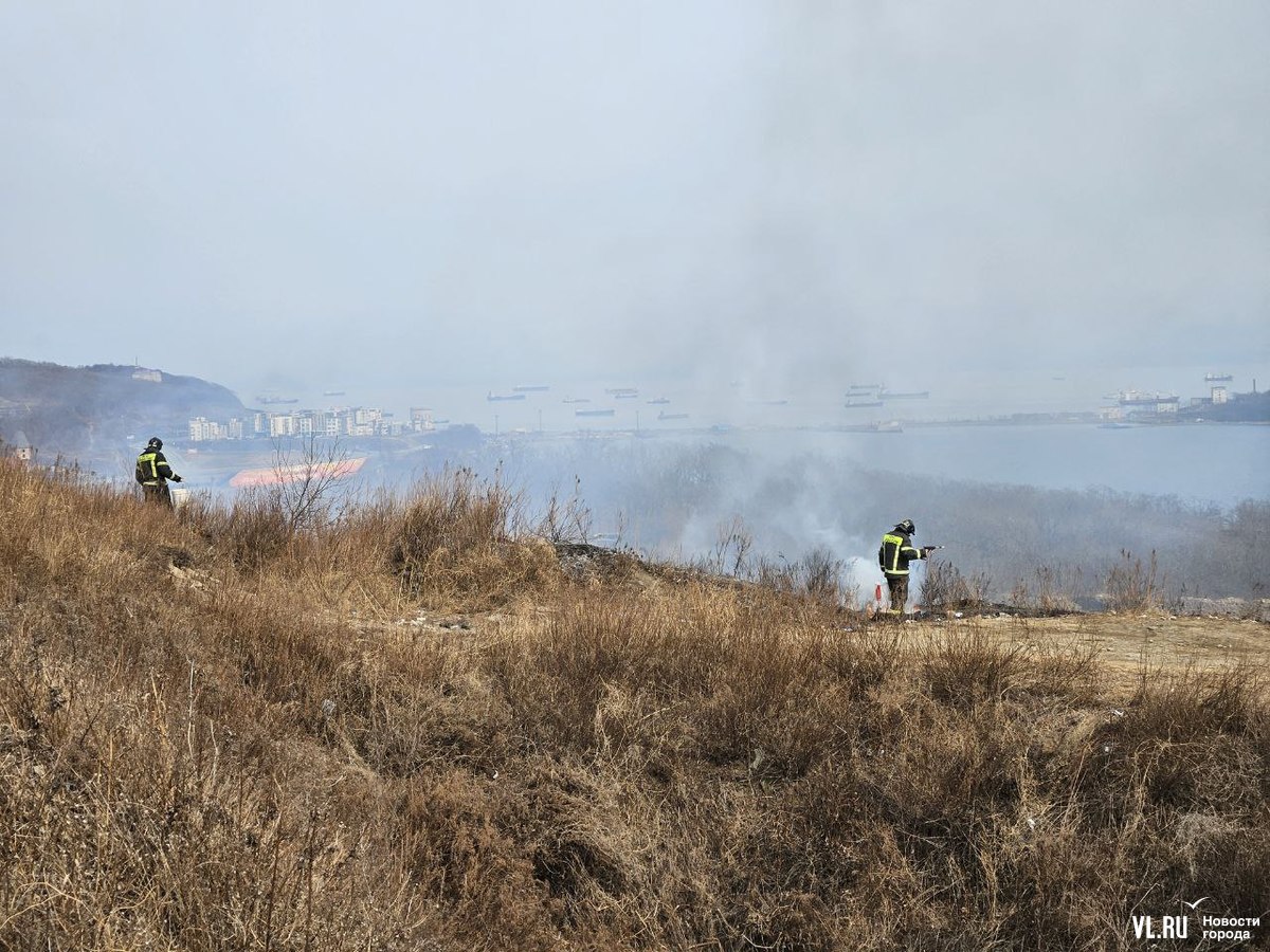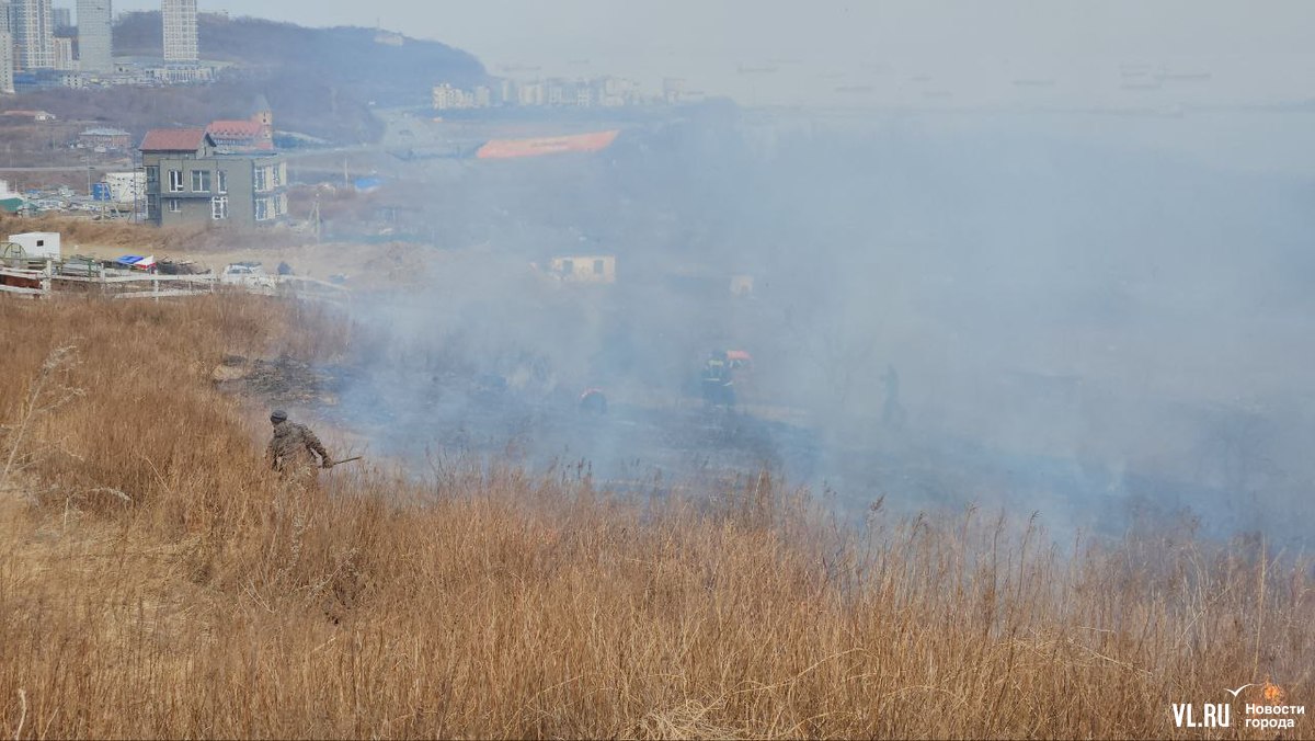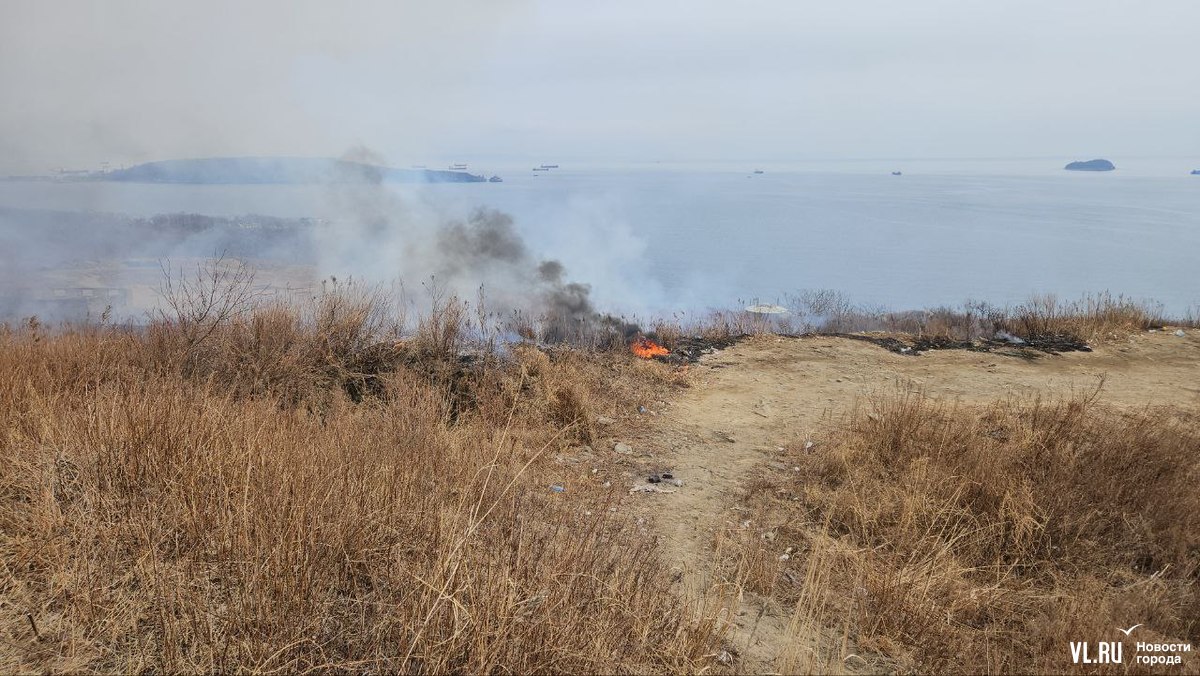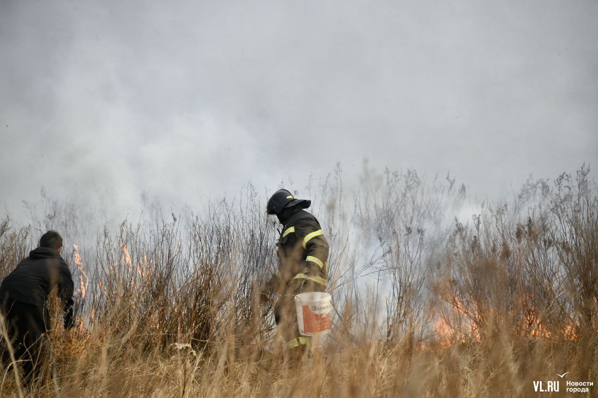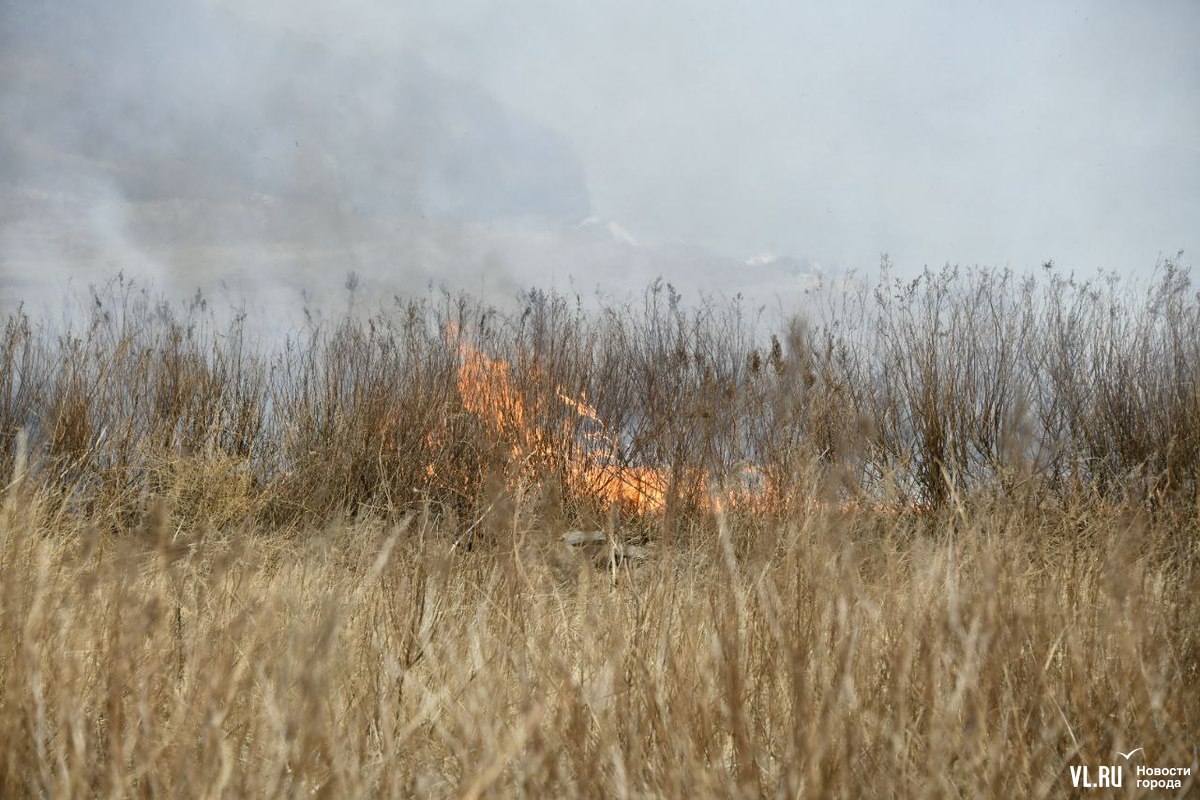 В МЧС Приморского края сообщили, что пожарные ликвидируют возгорание 400 метров по фронту. Угрозы перехода огня на строения нет.
