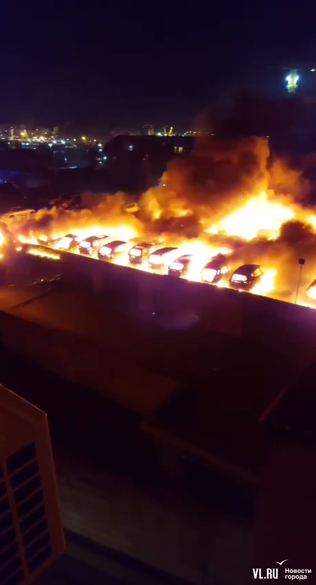 Кадры с горящими на автостоянке машинами прислали читатели в редакцию Новостей VL.ru рано утром в понедельник, 24 марта. На видео можно увидеть, как над ней поднимаются клубы пламени, слышны взрывы. Местные жители в чатах пишут, что число сгоревших машин могло быть меньшим, если бы вокруг дома существовал пожарный проезд.