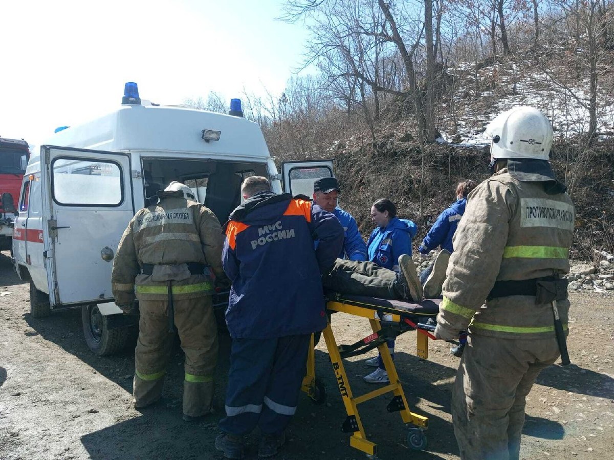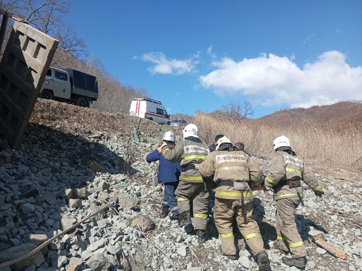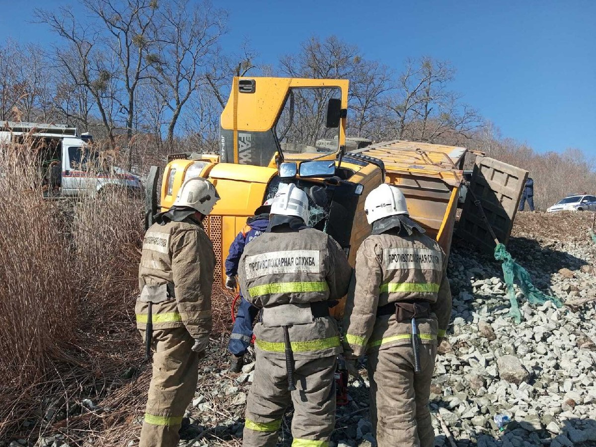 Недалеко от карьера в Партизанском округе съехал с дороги и опрокинулся самосвал, гружённый скалой. Водителя зажало в кабине. Спасатели достали его и передали скорой помощи.