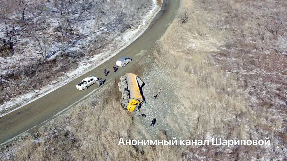 Судя по фото, это был китайский самосвал FAW. Он съехал с дороги, завалился на бок и рассыпал весь скальник, который перевозил.
