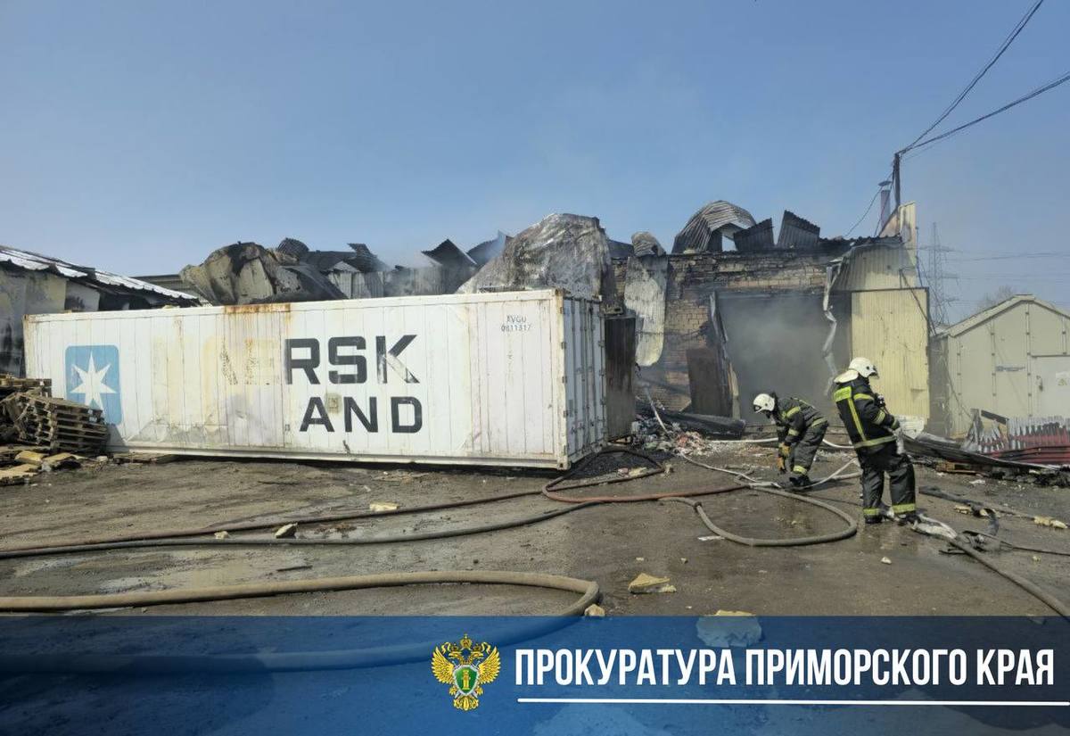 Прокуратура Приморья сообщила, что возгорание произошло на улице Старорусской. Госпитализированные работники пытались самостоятельно потушить огонь. Прокуратура поставила на контроль установление обстоятельств крупного пожара на территории торгового объекта. Надзорное ведомство контролирует установление обстоятельств произошедшего и уточняет, что окончательные выводы о причине пожара будут сделаны по результатам пожарно-технической экспертизы. Прокуратура проверит, как на объекте соблюдаются требования пожарной безопасности.