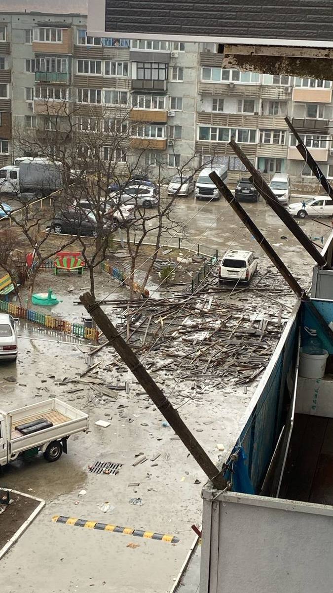 В Приморье штормовой ветер сносит крыши домов и рвёт провода. Кровлю сорвало с многоэтажки в Зарубино, обломками завалило придомовую парковку с детской площадкой. Крыши, обшивку зданий и беседки сдувает и в других населённых пунктах. Из-за аварий без электричества на юге края осталось около 9 тысяч жителей.