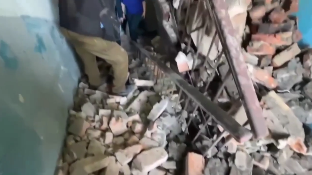 В повреждённом подъезде 16 квартир, зарегистрировано 16 человек (всего в доме 46 кв., 140 чел.). Решается вопрос о введении режима ЧС.