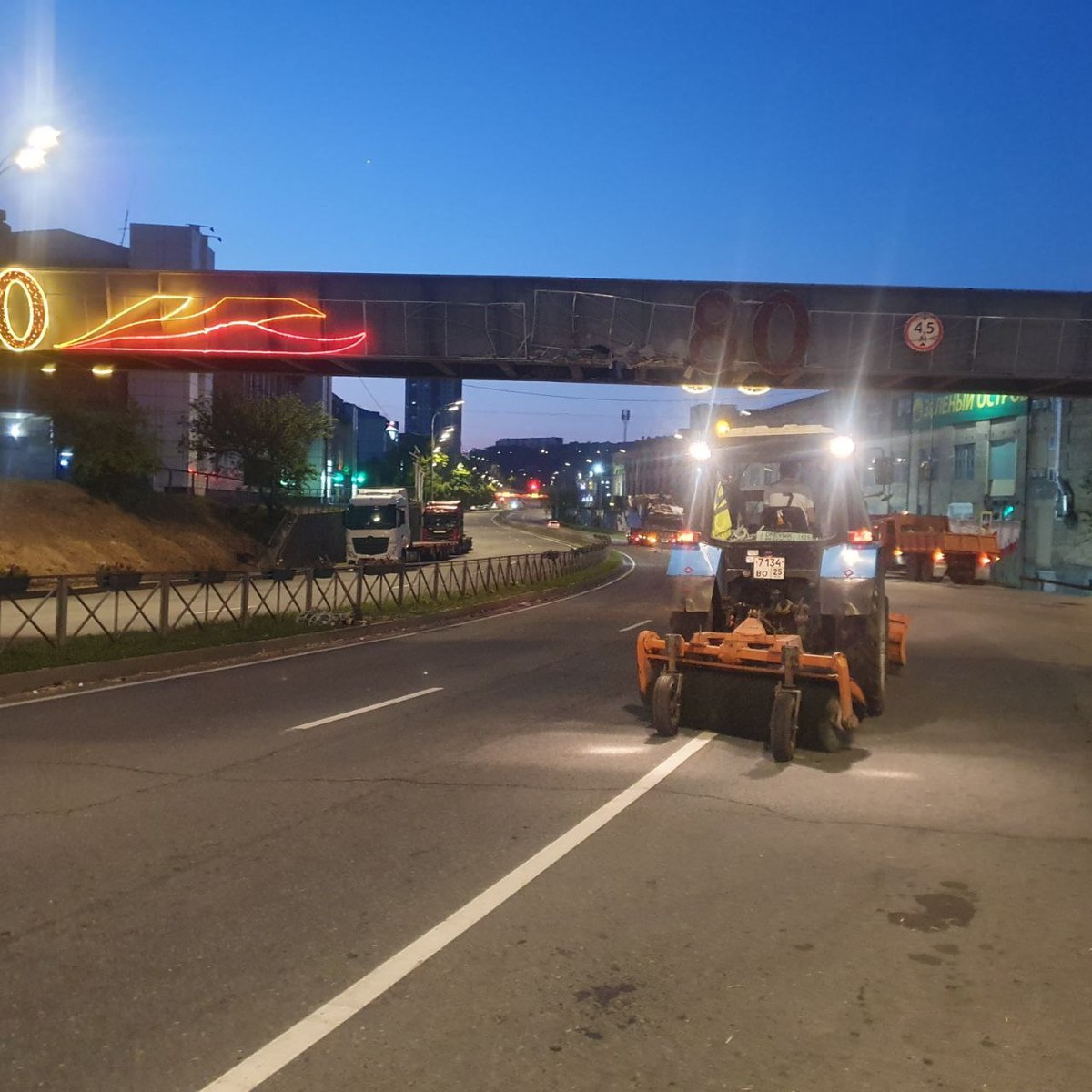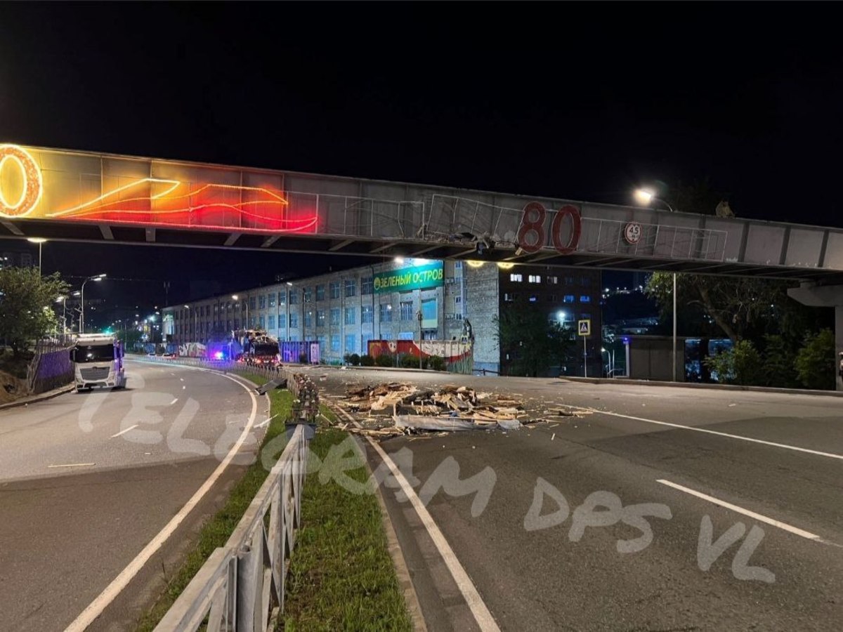 Ночью в воскресенье, 8 июня, на Калинина большегруз не поместился под виадуком и снёс часть праздничной подсветки, установленной ко Дню Победы. От удара груз из кузова вывалился на дорогу в районе «Зелёного острова». Никто не пострадал, другие автомобили, кроме самого грузовика SITRAK, повреждений не получили.