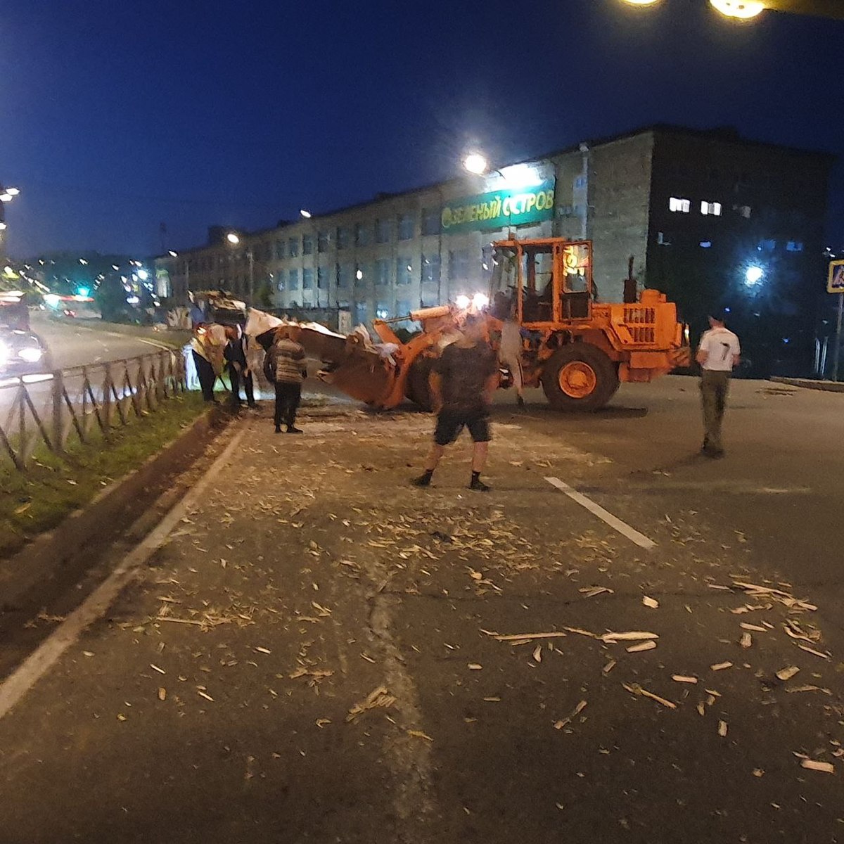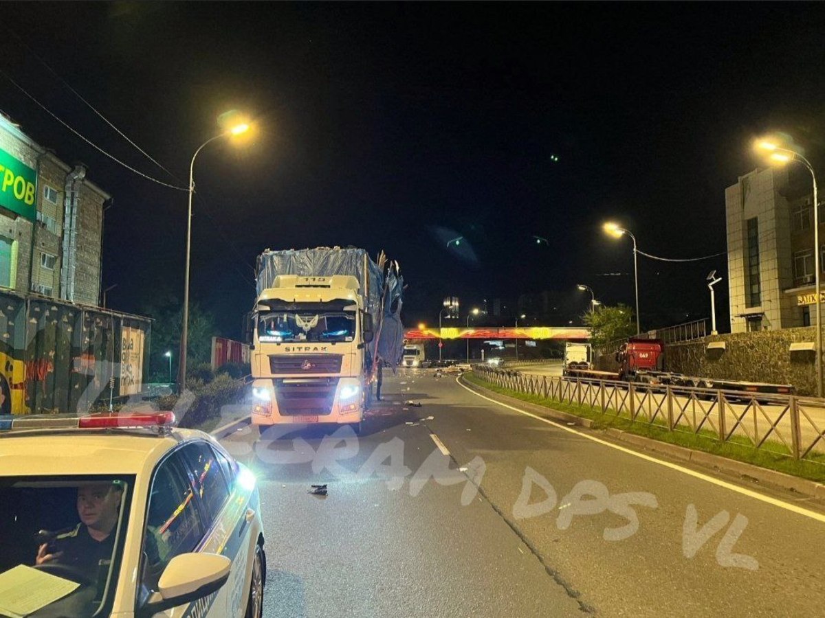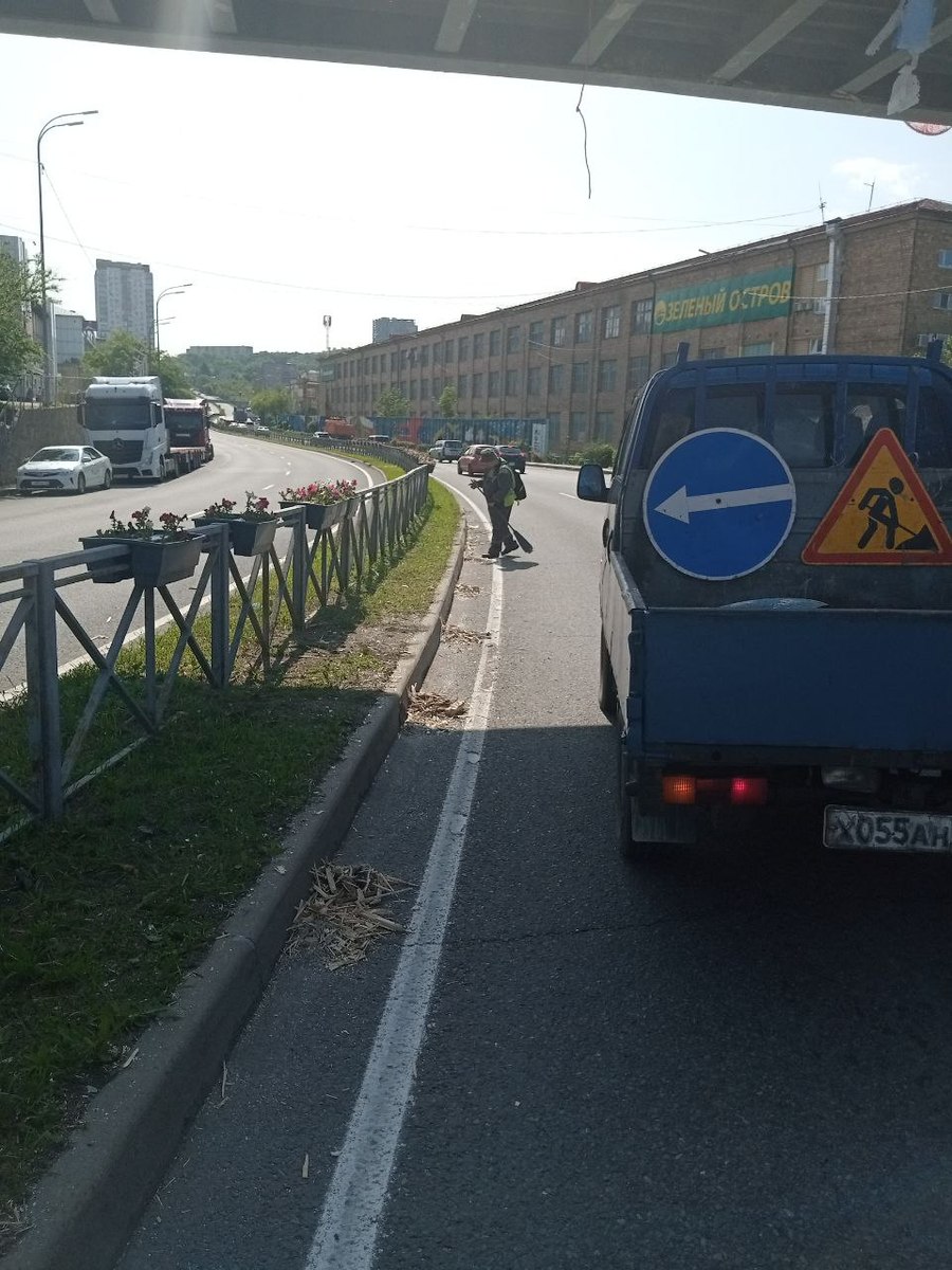 Обновление 10:39: В администрации Владивостока сообщили, что техника дорожного предприятия «Содержание городских территорий» ещё ночью убрала крупный мусор, а утром рабочие подмели проезжую часть. Дорога свободна, асфальт чистый.