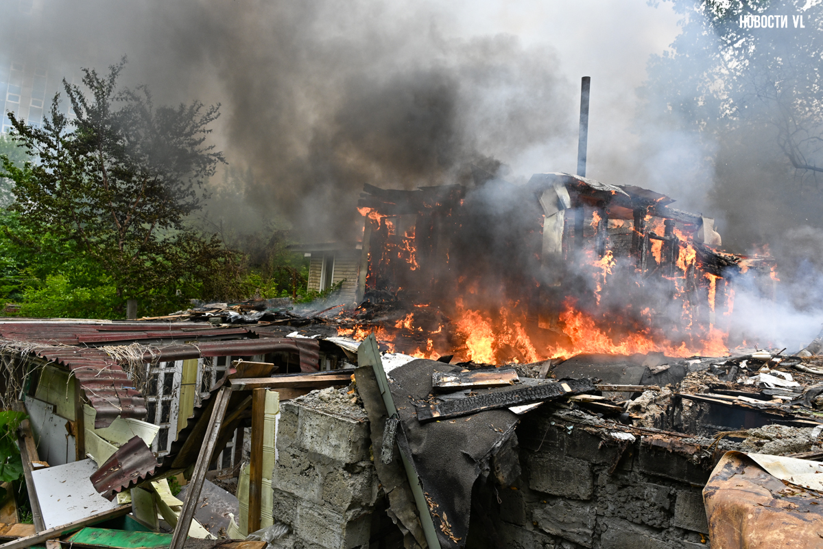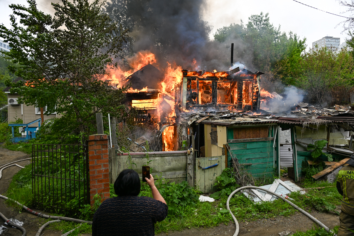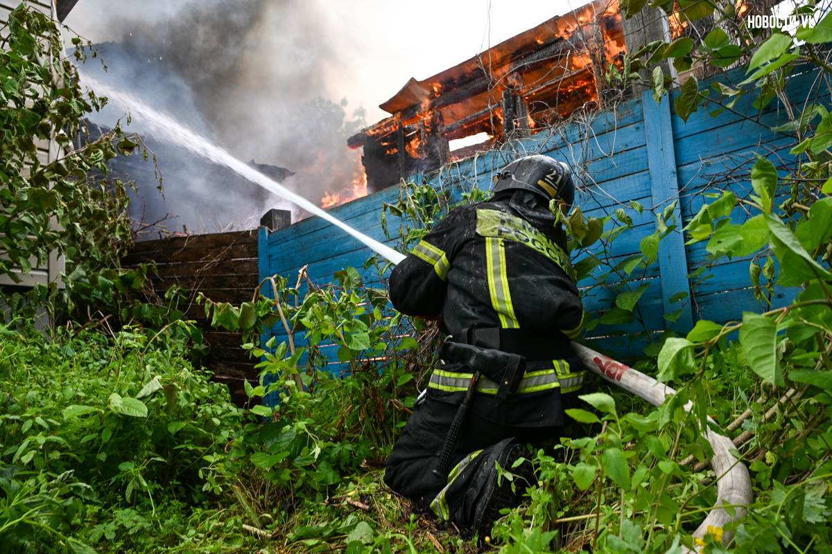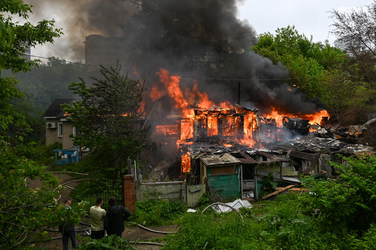 В частном секторе на Дальпрессе утром во вторник, 10 июня, снова произошёл пожар. Горит дом, где уже было несколько возгораний, пламя перекинулось на соседнее строение.