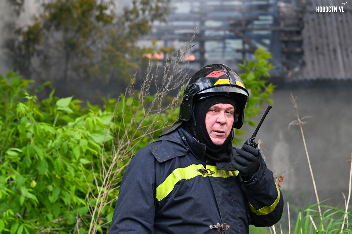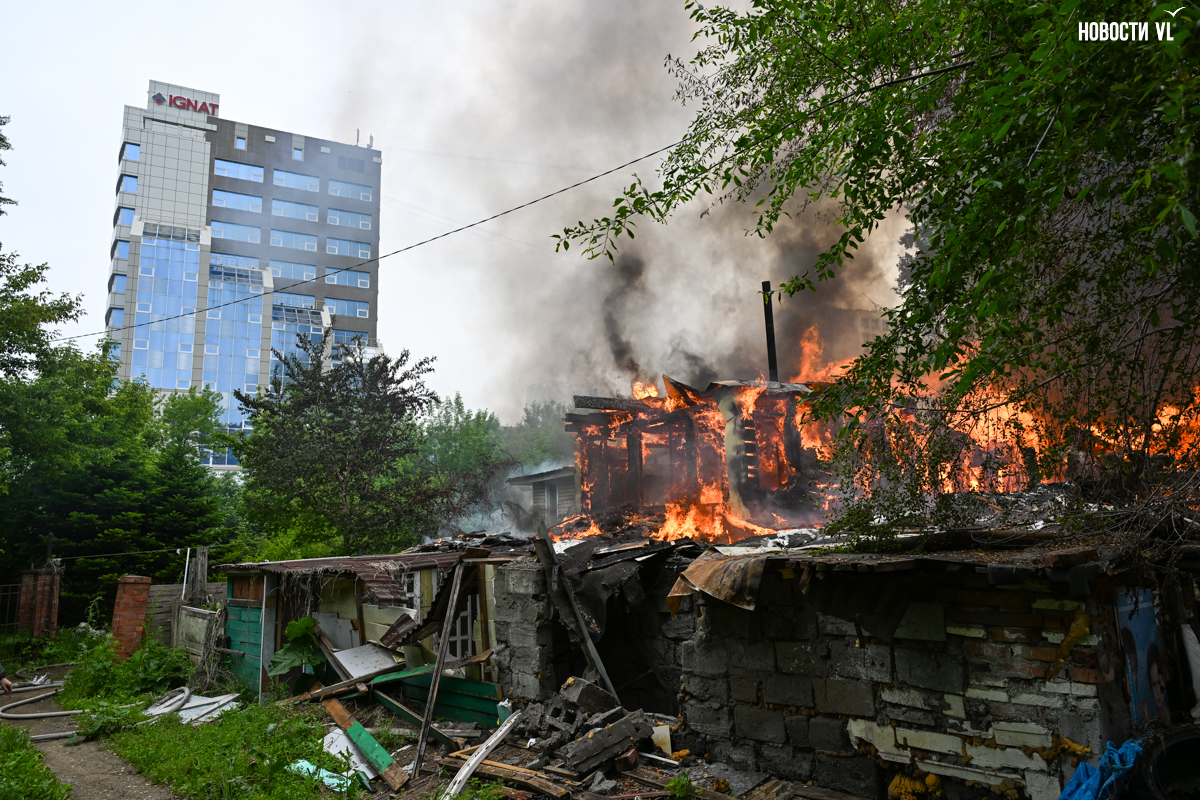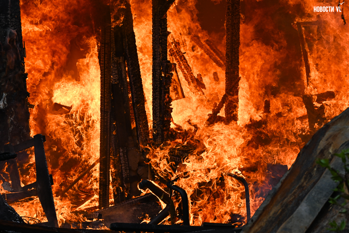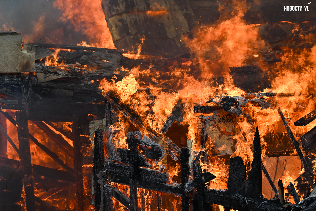 Корреспондент Новостей VL.ru сообщает, что горит дом, который горел уже несколько раз. Огонь перекинулся на крышу соседнего жилого дома.