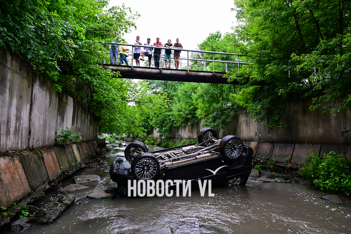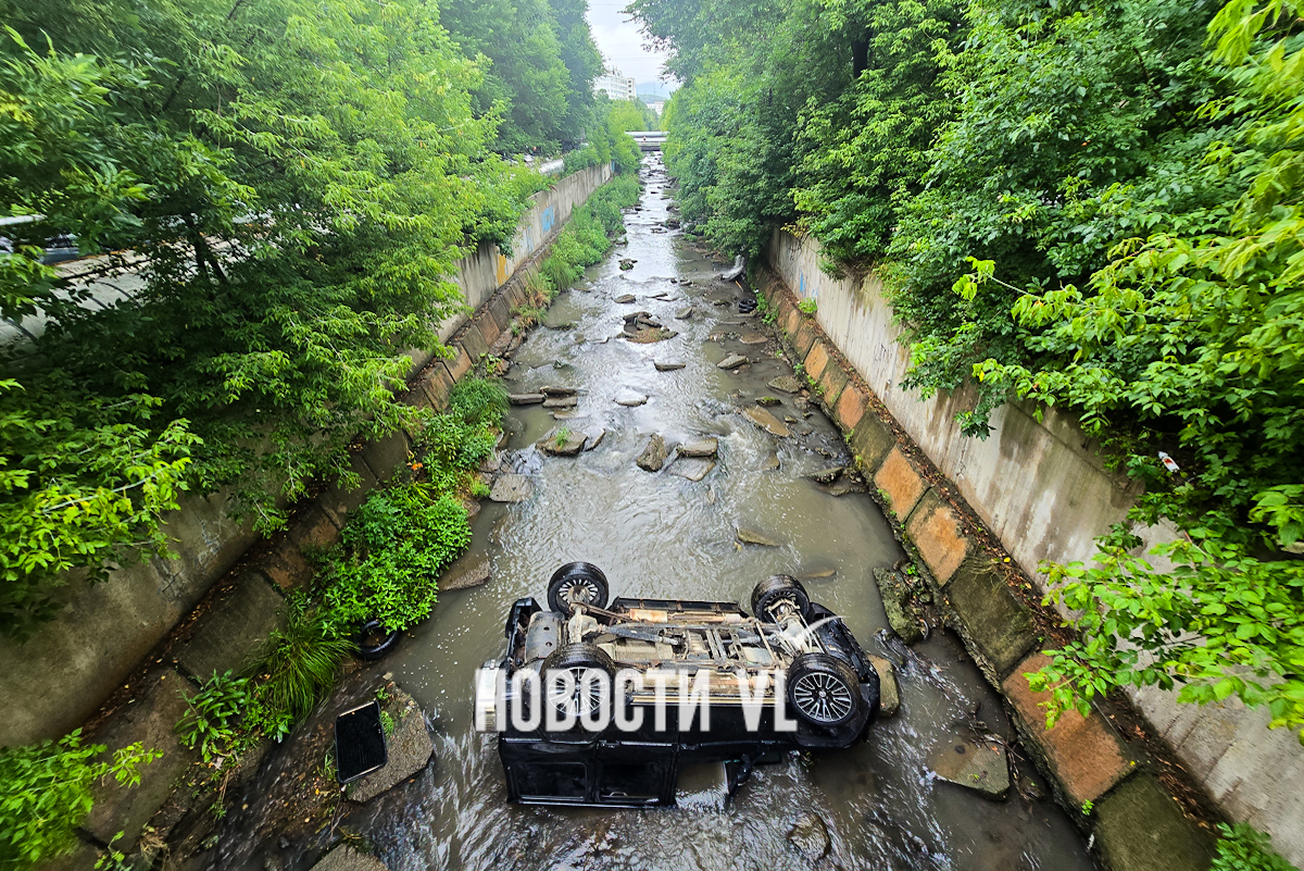 Mercedes Benz с водителем за рулём упал во Вторую речку в районе Бородинской, 20. Машина оказалась служебной – на ней приехал из Москвы китайский журналист. Он же и был за рулём. По его словам, у старого внедорожника отказали тормоза. Сам водитель почти не пострадал – отделался ссадинами. А вот автомобиль сильно помят и лишился нескольких стёкол.