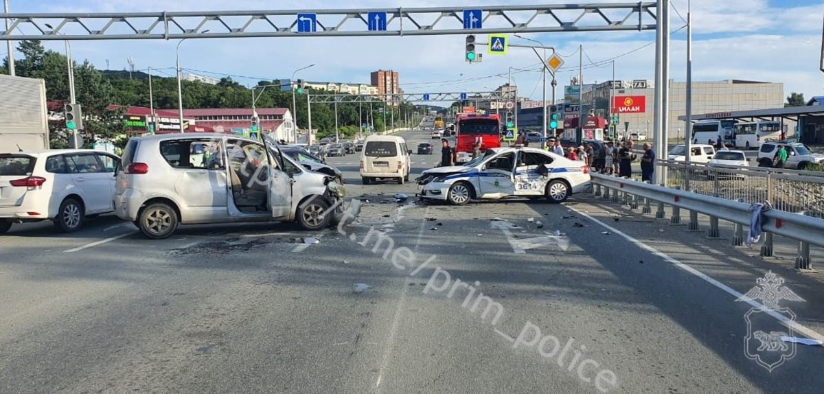 Как сообщает УМВД России по Приморскому краю, авария произошла около 18:10 в районе автовокзала Фокино. По предварительной информации, водитель Honda Insight выезжал со второстепенной дороги на главную и не пропустил Skoda Octavia – патрульную машину Госавтоинспекции с включёнными проблесковыми маячками и специальным звуковым сигналом.