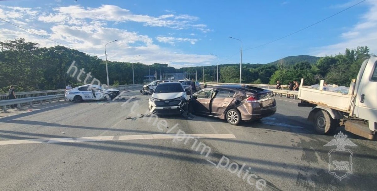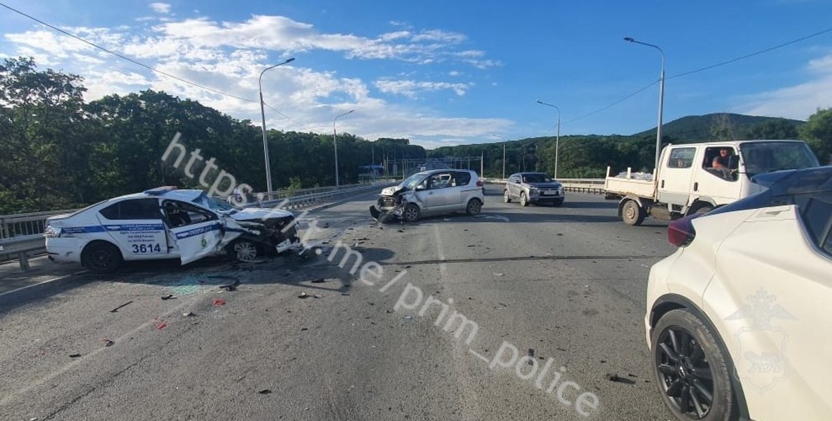 Вечером в понедельник, 21 июля, в Фокино произошло ДТП с тремя автомобилями и патрульной машиной. Пострадали четыре человека, в том числе два инспектора ДПС.