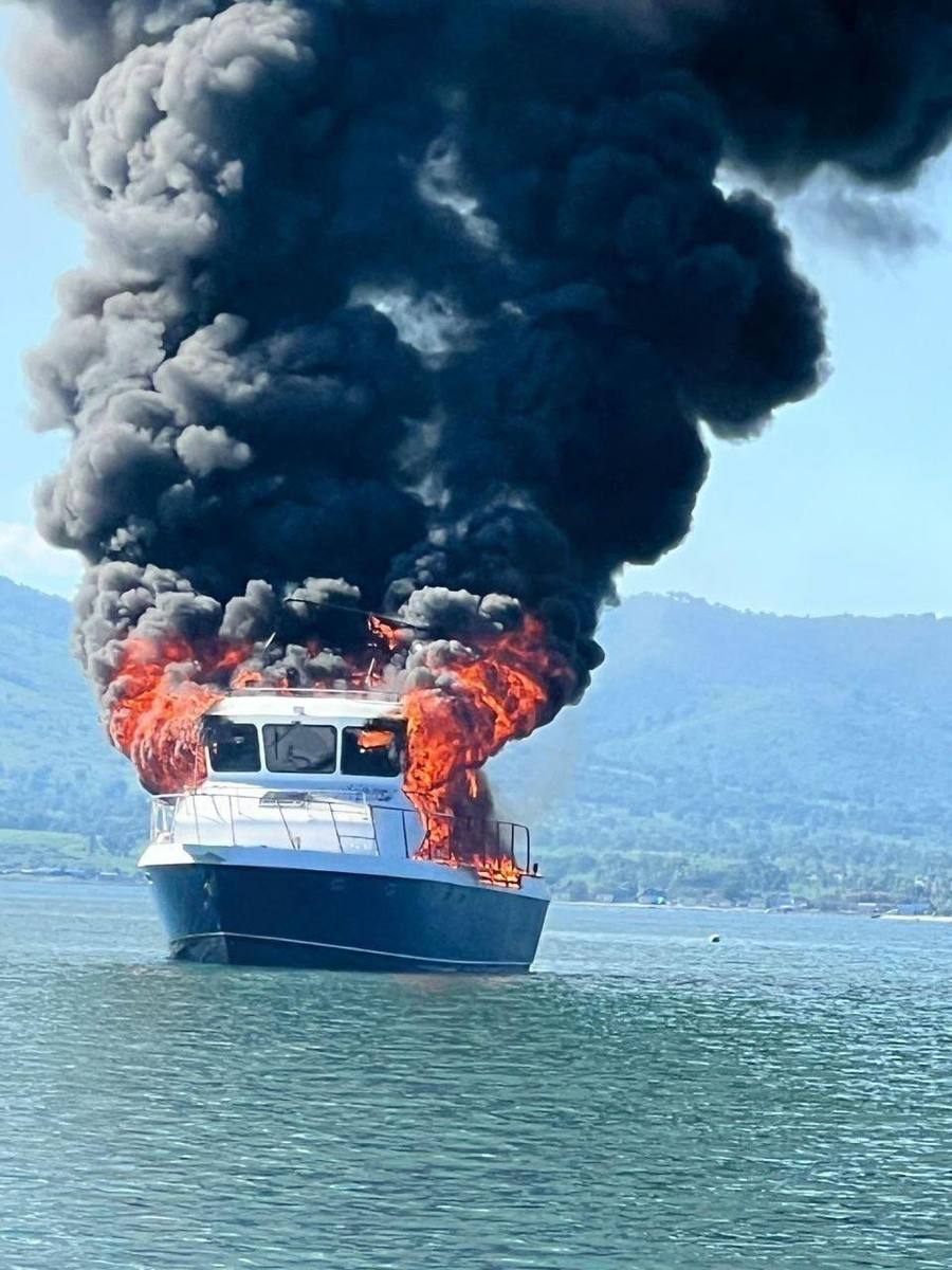 Обновление 20:06: Сгоревший в бухте Миноносок катер затонул, сообщили в Приморской транспортной прокуратуре. На борту было четыре человека, они не пострадали.