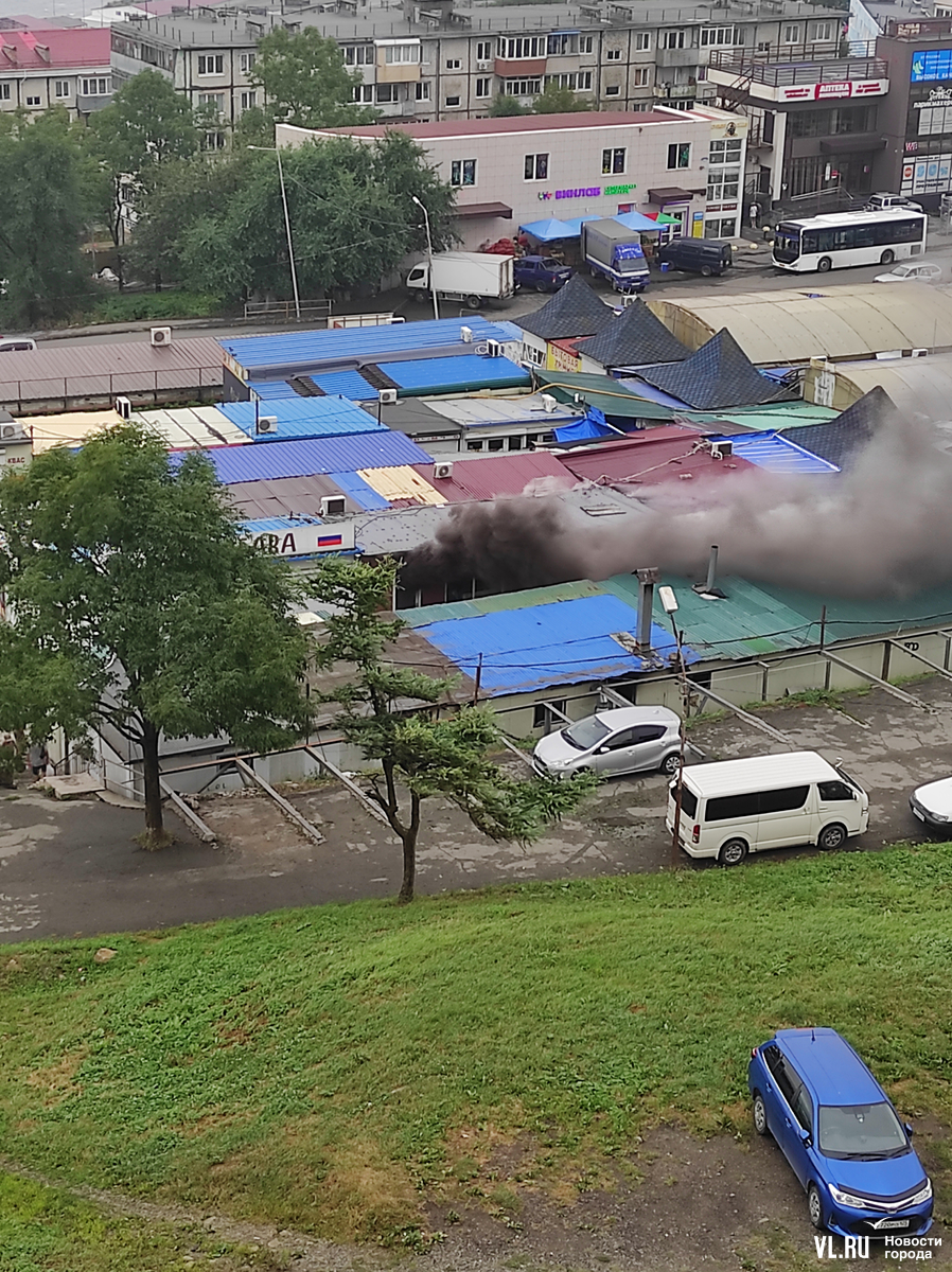 16:19: МЧС Приморья сообщает, что администрация рынка предприняла первичные меры по тушению до приезда пожарных. Огнеборцы ликвидировали возгорание на 20 квадратных метрах. Никто не пострадал.