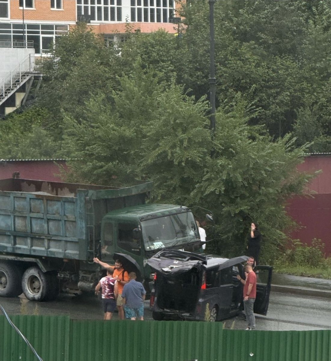 Из-за ДТП с самосвалом стоит не только Снеговая Падь, но и трасса Седанка – Патрокл в обе стороны. Как сообщают очевидцы, самосвал спускался как раз со стороны объездной. У него отказали тормоза, и гружёная машина покатилась вниз между рядов. А движение было плотным. В том или ином виде от аварии пострадало не менее 15 машин. Закончил свой путь он на светофоре в районе Адмирала Горшкова, 71, врезавшись в Toyota Vellfire, который выезжал от дома в сторону объездной. Водителя спас правый руль, но машину уже вряд ли можно спасти.
