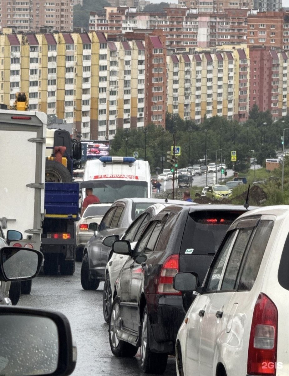 Из города привычная пробка, которую омрачают мелкие аварии. Серьёзная пробка от 14-го километра в город, она тянется до самого Золотого моста. Колом центр, Эгершельд, район Спортивной и Борисенко. Частично в пробке Вилкова и Калинина – из-за перекрытой части Борисенко.