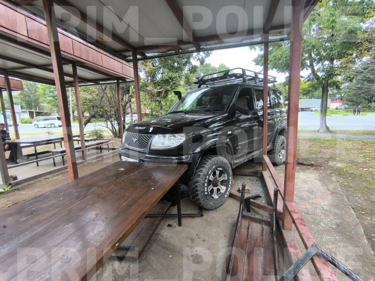 В Находке «УАЗ Патриот» врезался в беседку кафе, где находились люди. Пострадала женщина, сейчас она находится в реанимации. Медосвидетельствование показало, что водитель был пьян.