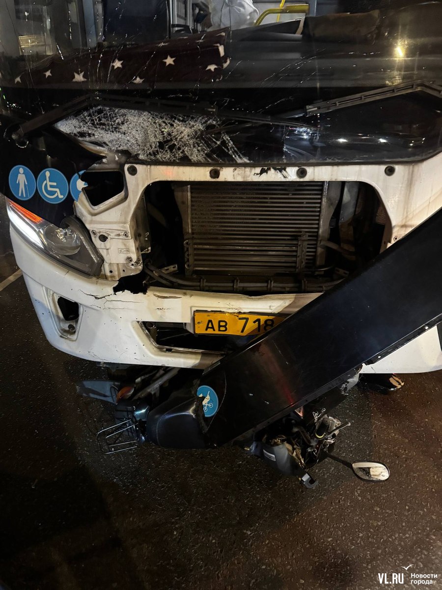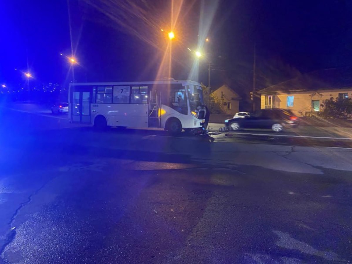 Обновлено 2 октября: Как уточнили в полиции, у 40-летнего водителя мопеда «Хонда Дио», выехавшего на встречную полосу и угодившего под автобус, нет водительского удостоверения, он управлял транспортным средством без защитной экипировки. Мужчина госпитализирован, но в отношении него составлены административные материалы. Пассажиры в салоне автобуса не пострадали. Проверочные мероприятия продолжаются.