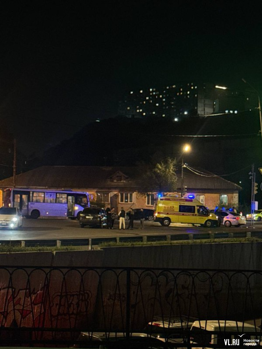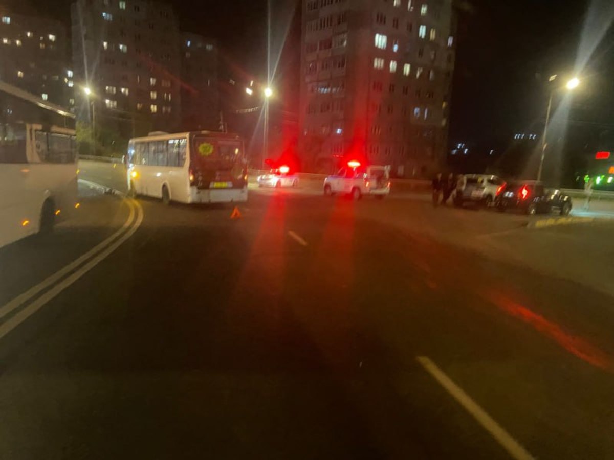 В автобусе в этот момент находились пассажиры, но никто из них, по предварительным данным, не пострадал. Они покинули салон, некоторые остались в качестве свидетелей. Скорая уже на месте.