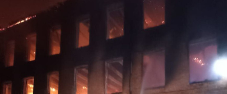 Сообщение о пожаре поступило пожарно-спасательной службе в 17:42. Когда на место прибыли пожарные, горели 2-й и 3-й этажи здания, произошло частичное обрушение крыши. В настоящее время проводится тушение пожара на площади около 1 тыс. квадратных метров.