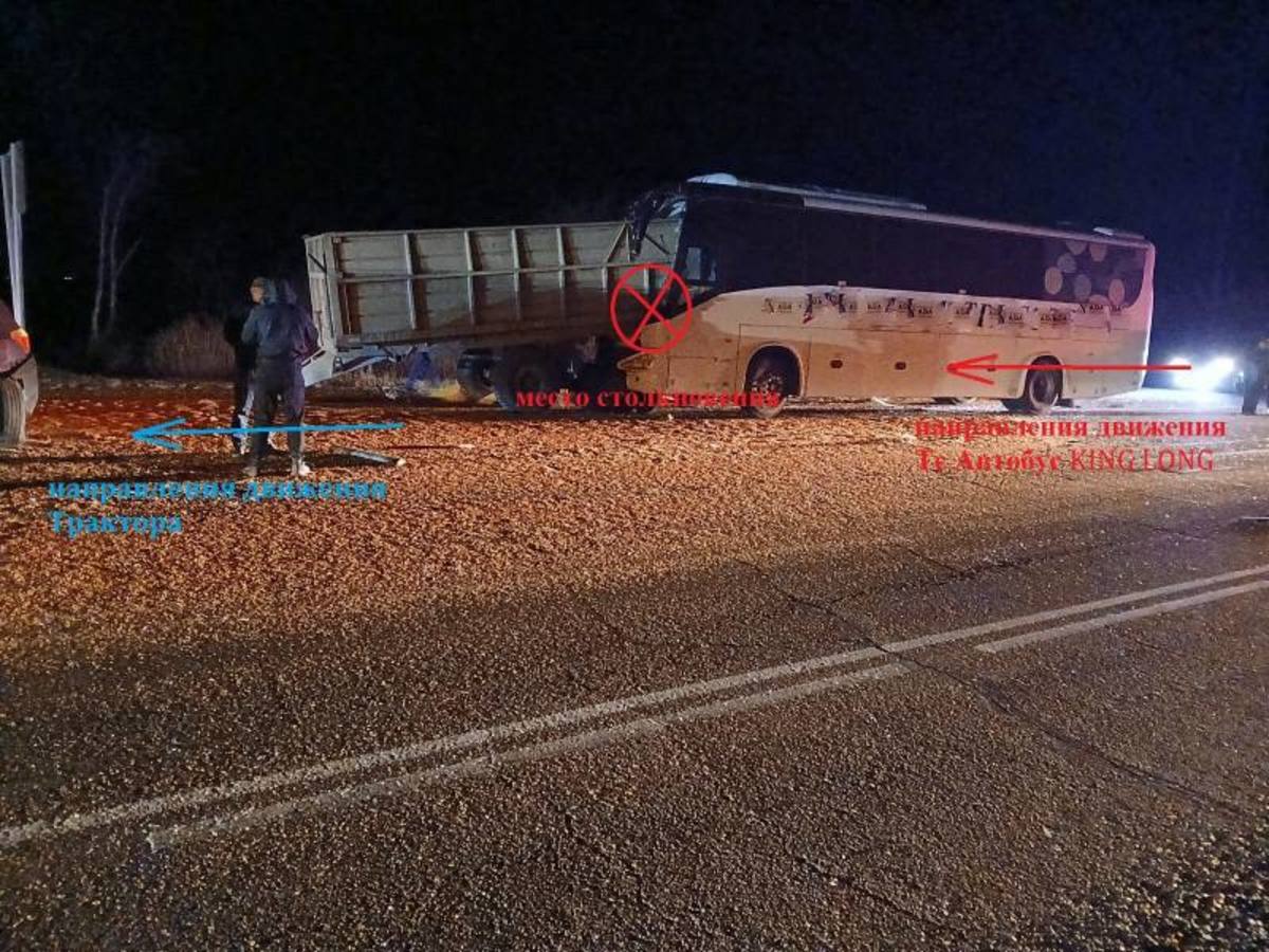 Полиция уточнила обстоятельства ДТП с туристическим автобусом, которое случилось вечером 27 октября. Зерновоз не был брошен на дороге – автобус врезался в прицеп ехавшего впереди трактора. Пострадавших тоже больше, чем один: травмы получили водитель и семеро пассажиров, в том числе ребёнок.