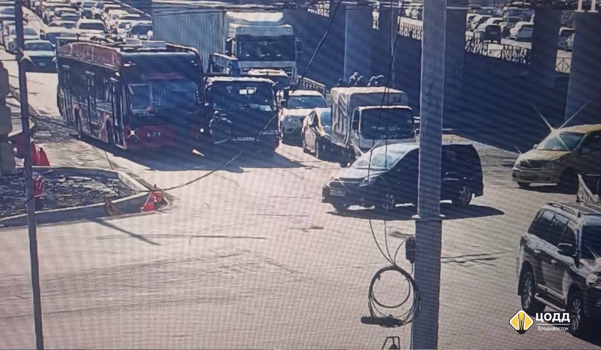 Сегодняшнее ДТП не такое серьёзное. Оно произошло на крайней правой полосе в районе перекрёстка 100-летия Владивостока и улицы Русской, где сейчас идёт масштабная реконструкция.