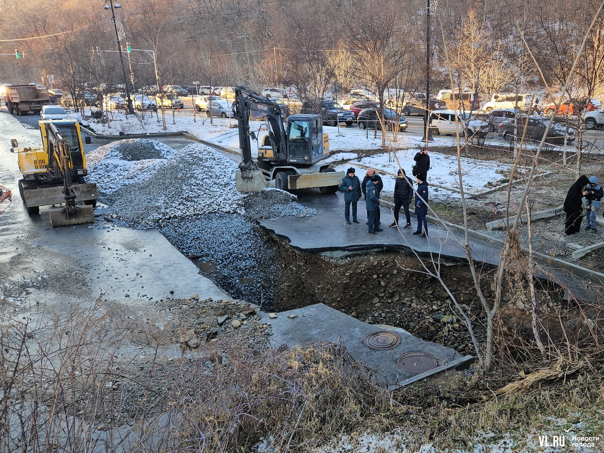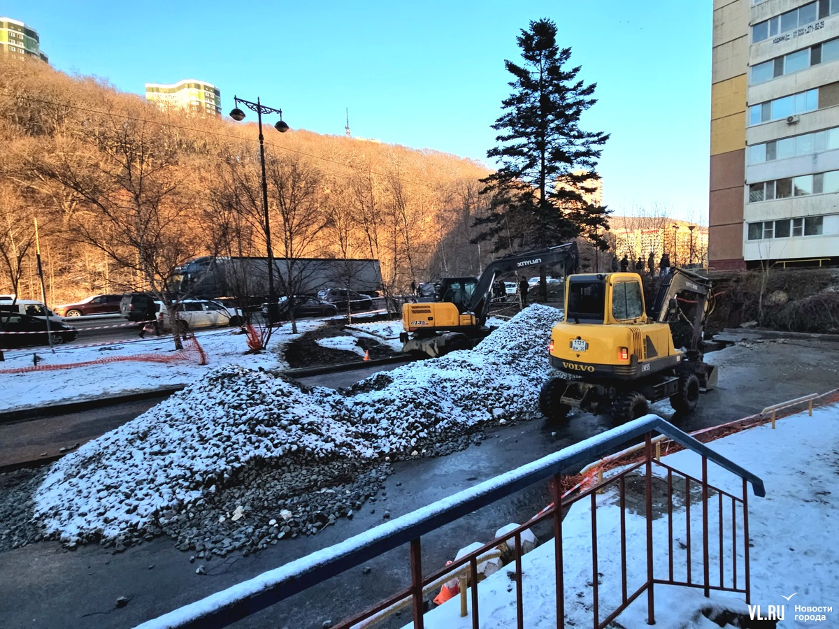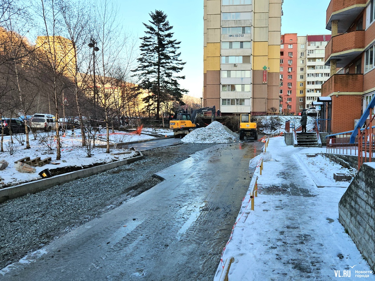 Ремонт от Адмирала Горшкова, 5 (будущий ЖК «Флагман») до Адмирала Горшкова, 38 (остановка «Гвардейская») и от Адмирала Горшкова, 20 до Адмирала Горшкова, 24 давно уже стал проклятьем для жителей района Снеговая Падь. Работы по замене 1 км труб выполняет подрядчик Примводоканала. ООО «Восток Энергохолдинг», – с ремонтом и благоустройством он сильно затянул, до сих пор придомовые территории и парковки ближайших домов заняты раскопками или превращены в стоянку для техники и место перевалки строительных материалов, хотя все работы должны были быть завершены ещё несколько месяцев назад.