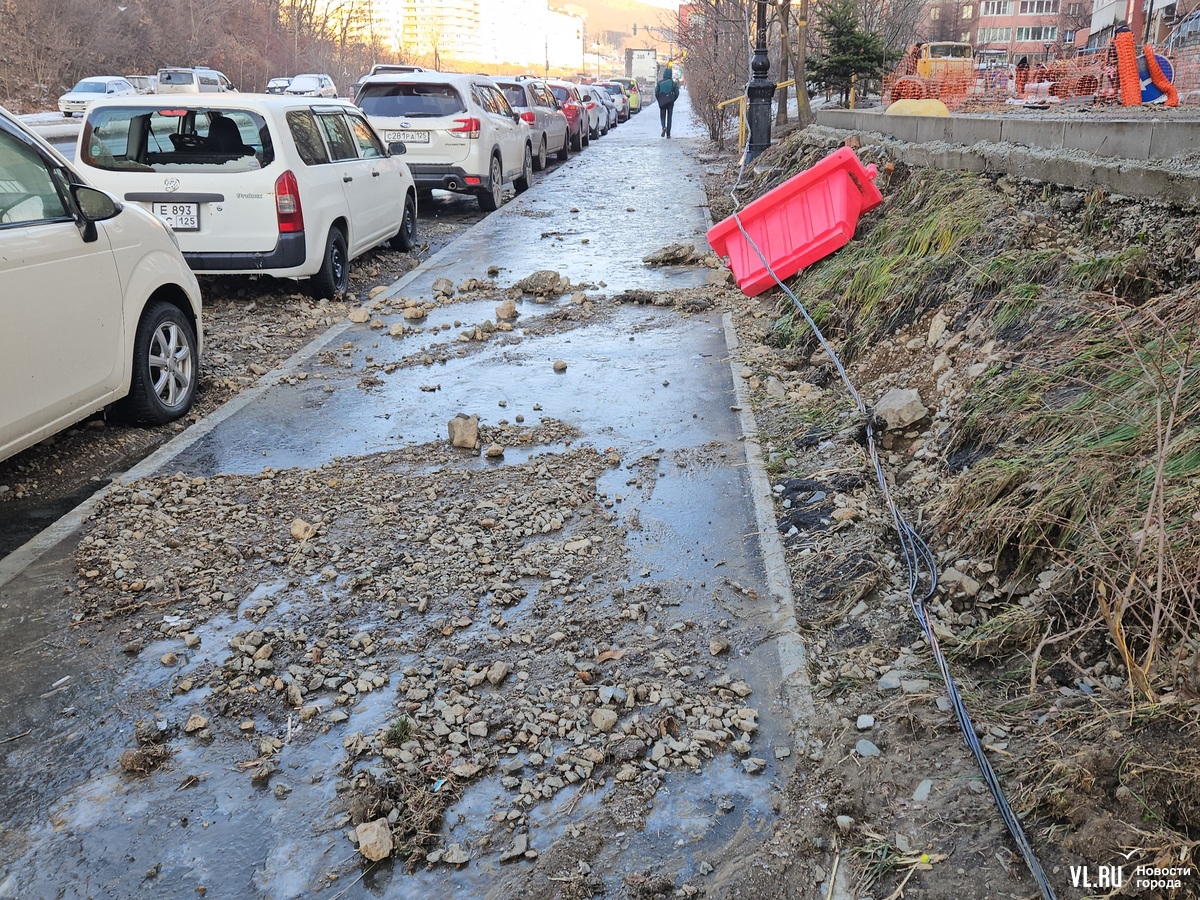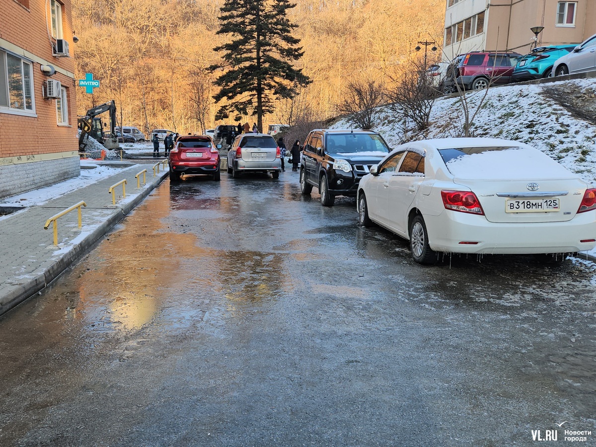В пятницу, 28 ноября, в районе Адмирала Горшкова, 32 в Снеговой Пади строители снова порвали трубу холодного водоснабжения – вода хлещет из траншеи, поднимаясь на несколько этажей вверх, заливает балконы соседних домов и придомовую территорию, вытекая на основную дорогу. Здесь работает подрядчик Примводоканала, затянувший с ремонтом. На место уже выехали специалисты Горводопровода. По данным сервиса «Отключения воды и света» на VL.ru, без воды осталось более 30 домов.