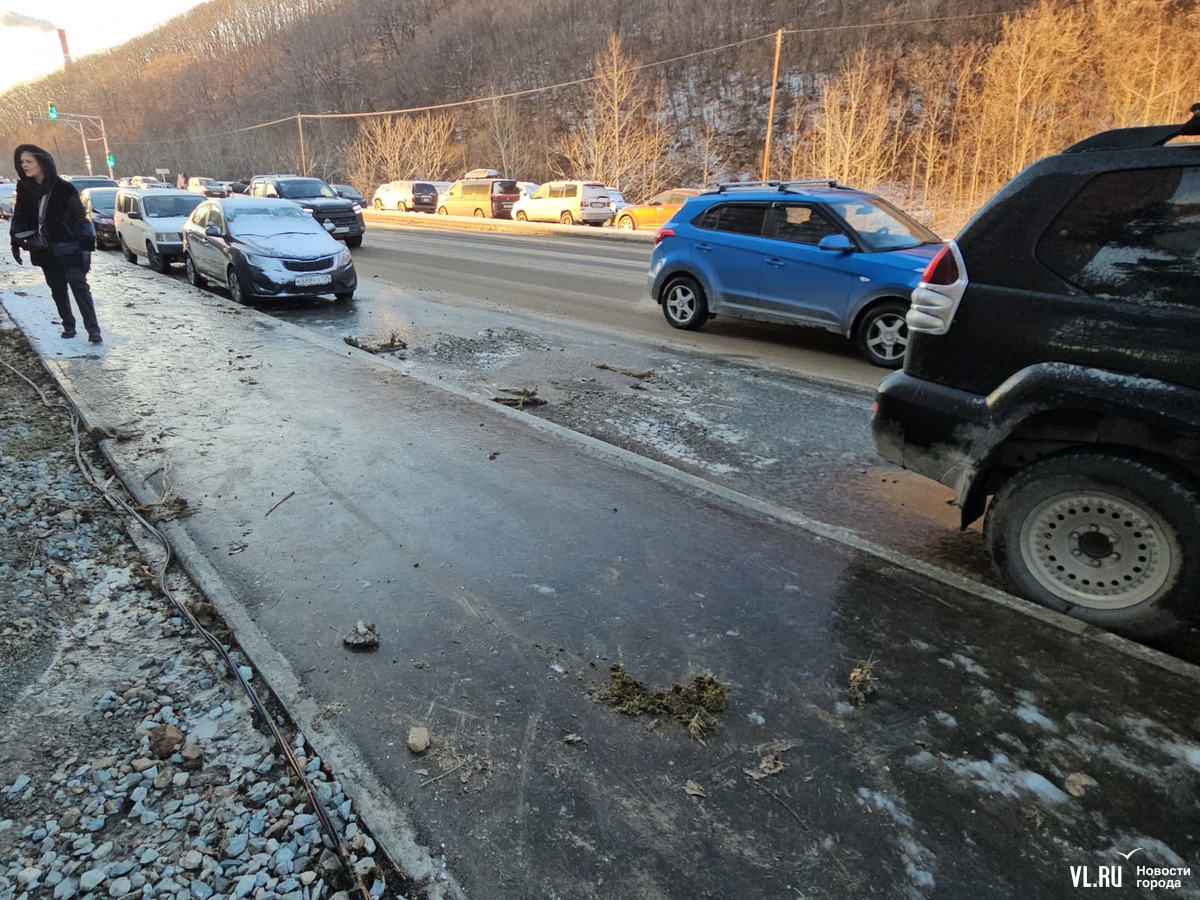 В пресс-службе Примводоканала подтвердили, что линию водопровода повредил тот самый подрядчик, на место уже выехали специалисты Горводопровода. Но, кажется, после устранения аварии, ближе к вечеру, дорога превратится в настоящий гигантский каток. В пресс-службе СГТ уточнили, что после устранения аварии их специалисты отправятся на участок для обработки дорог реагентами.